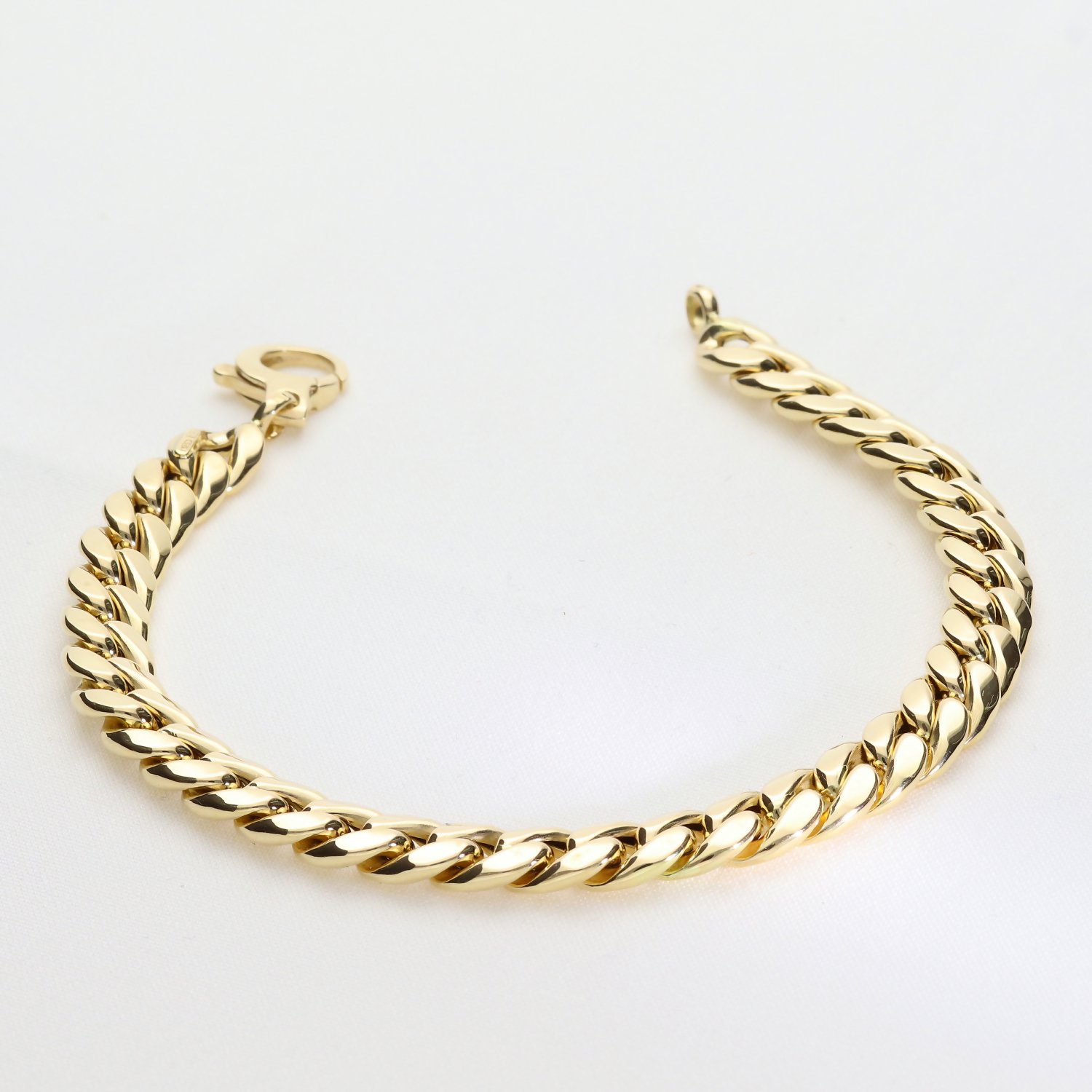 Elegancki, a jednocześnie wyrazisty design tej bransoletki sprawia, że jest ona idealnym dodatkiem zarówno do codziennych, jak i wieczorowych stylizacji. Wykonana z lśniącego, żółtego złota o klasycznym splocie pancerka, pięknie układa się na nadgarstku. Każde ogniwo, starannie szlifowane i polerowane, odbija światło, nadając biżuterii spektakularny blask.