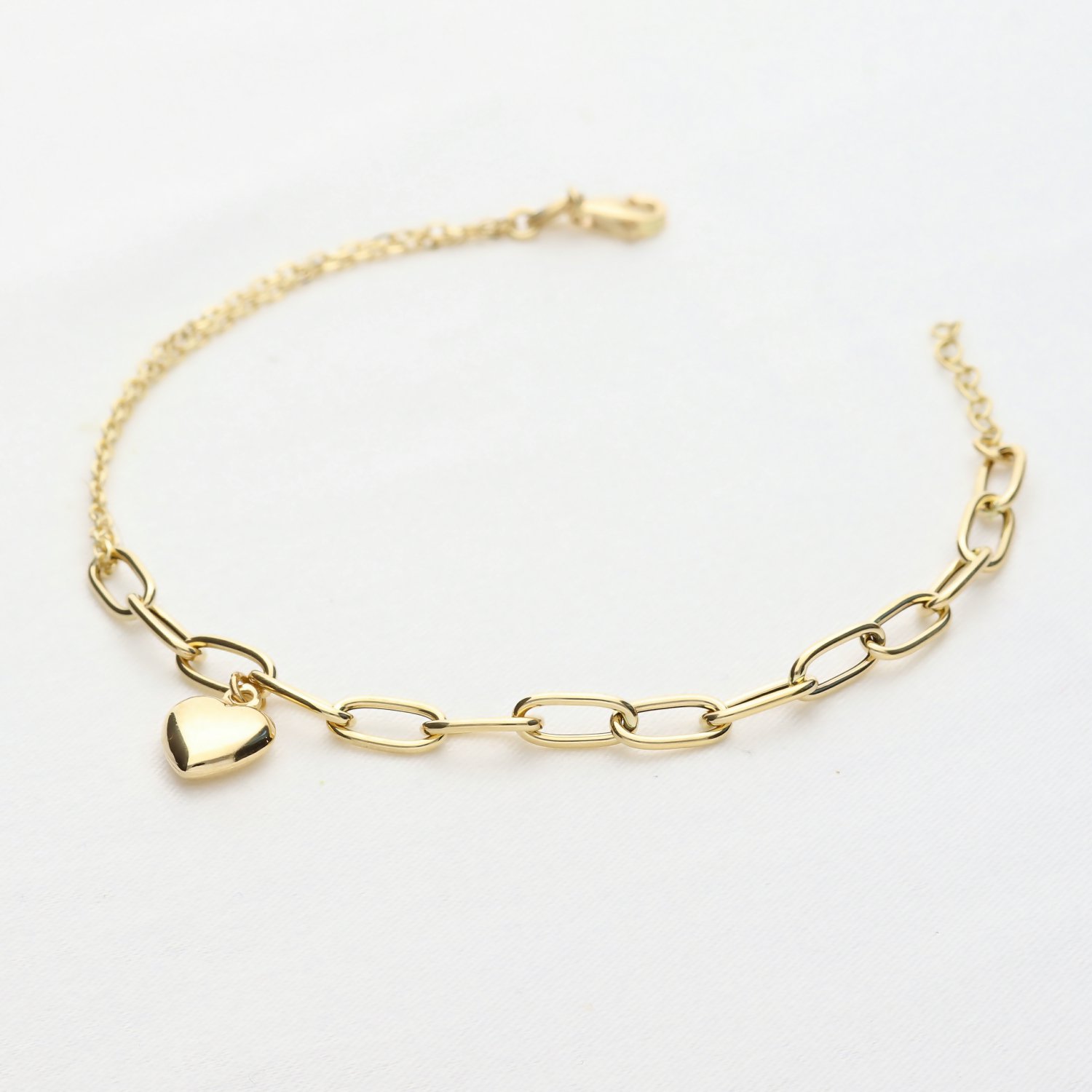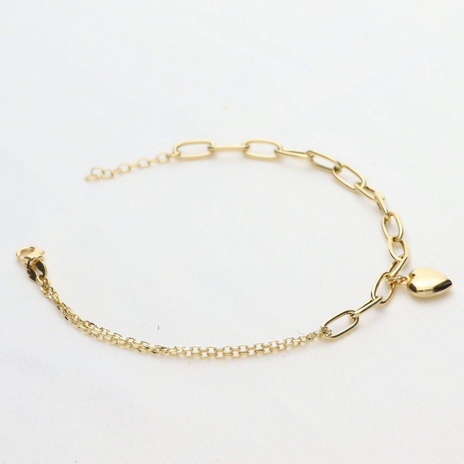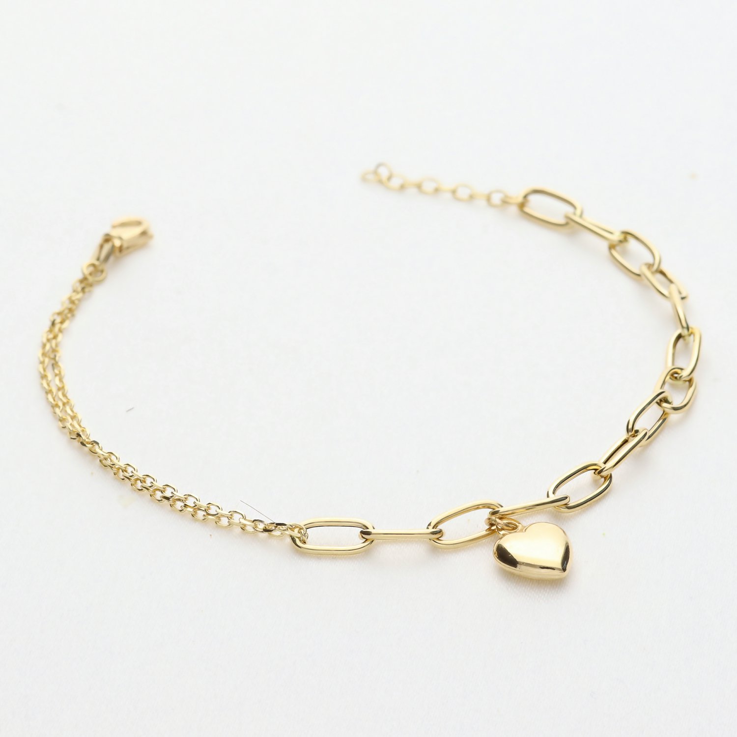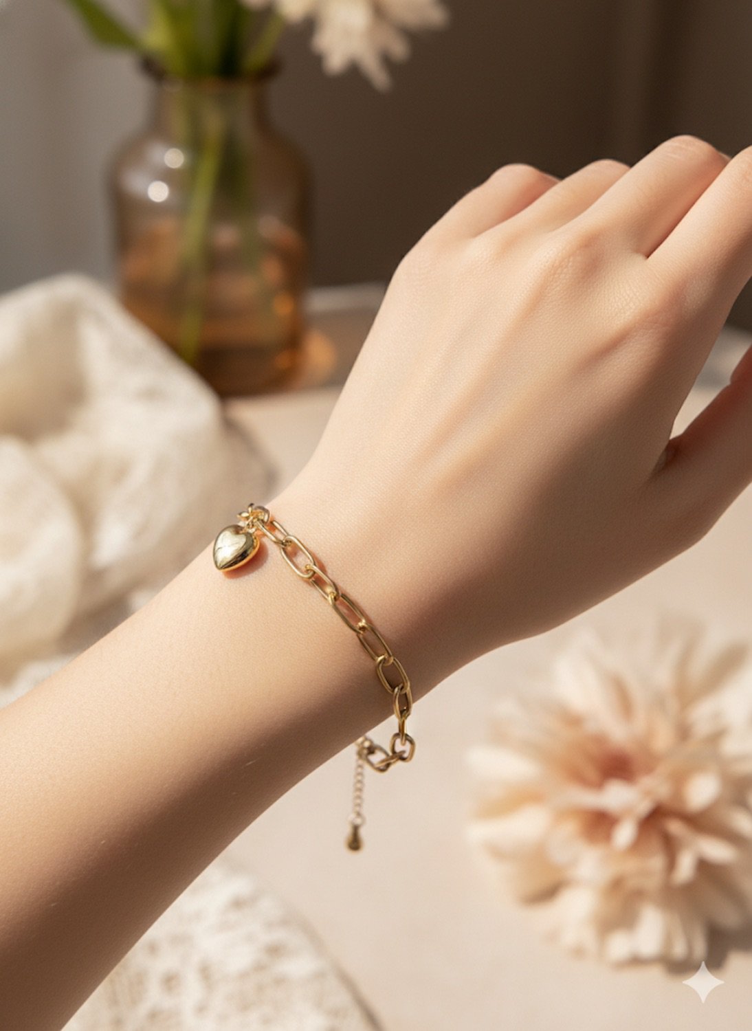 ​Złota Bransoletka na Dłoń z Serduszkiem - Elegancka Biżuteria Damska