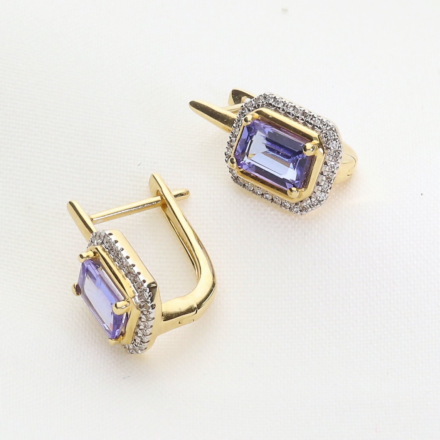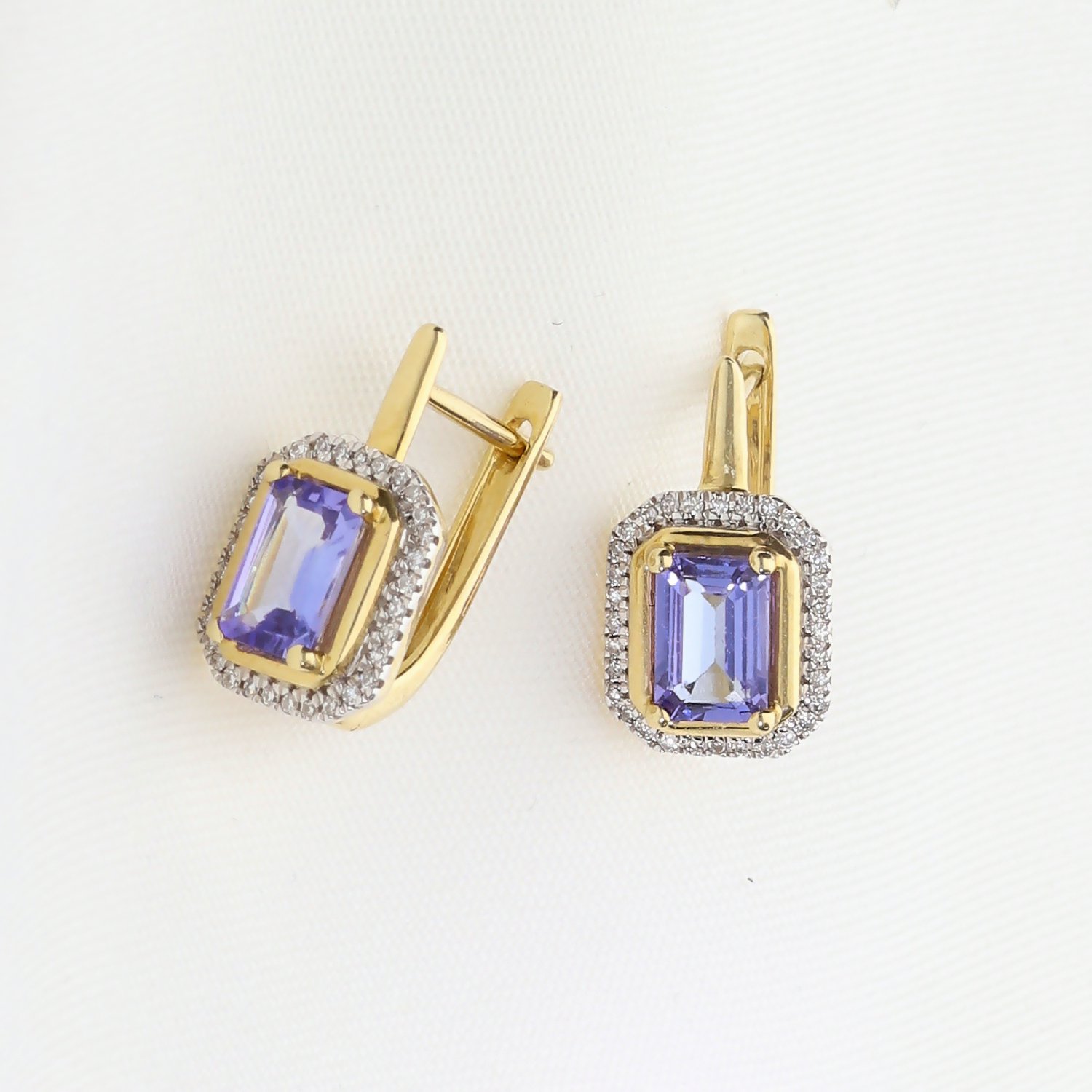 Złote kolczyki z tanzanitami i brylantami – elegancka biżuteria premium