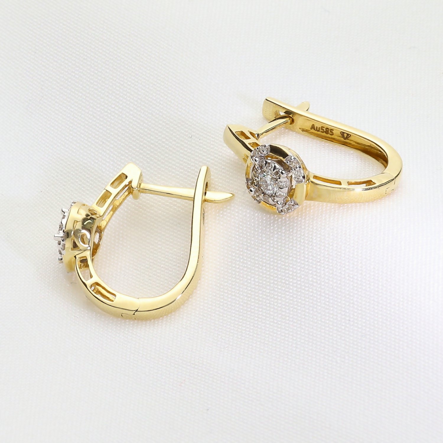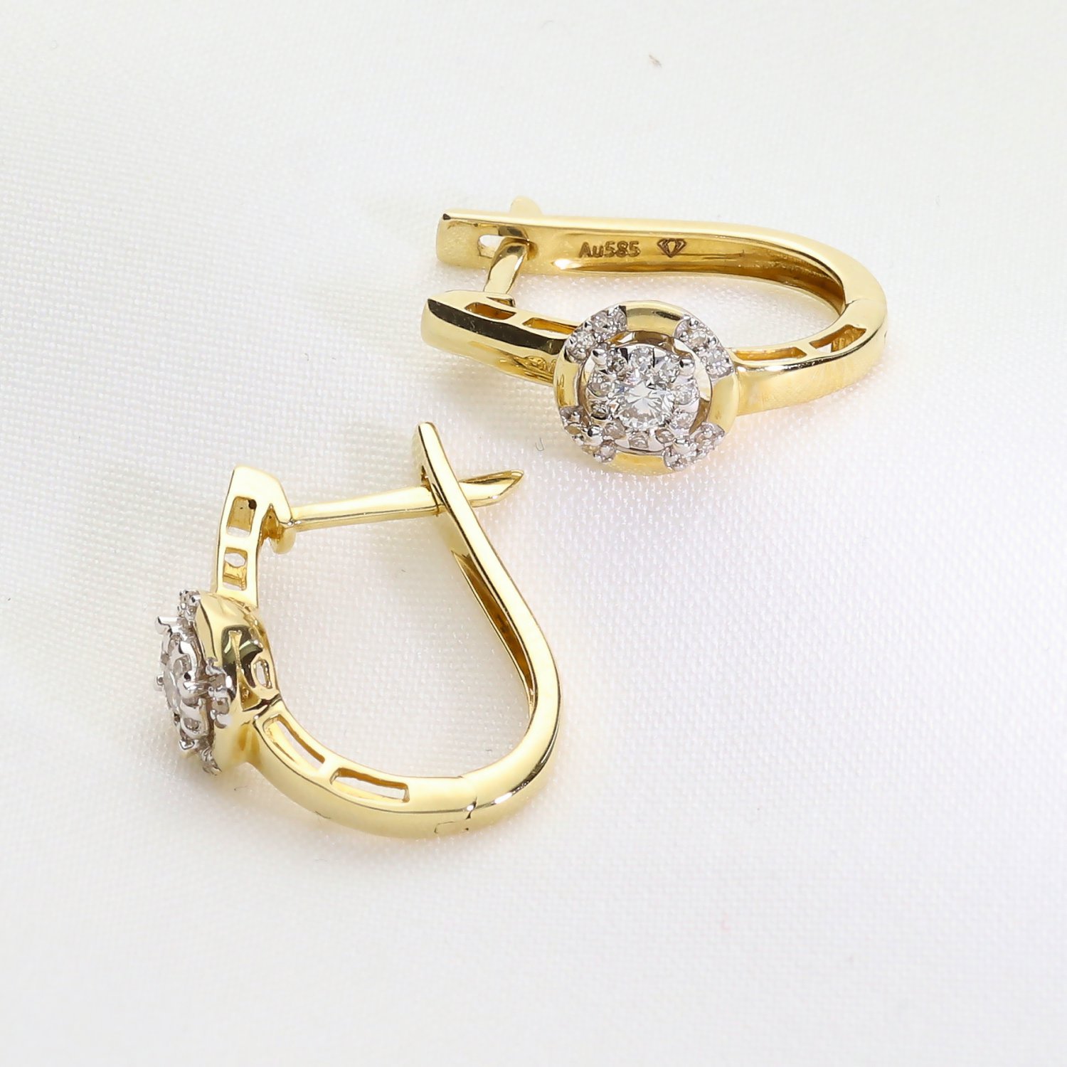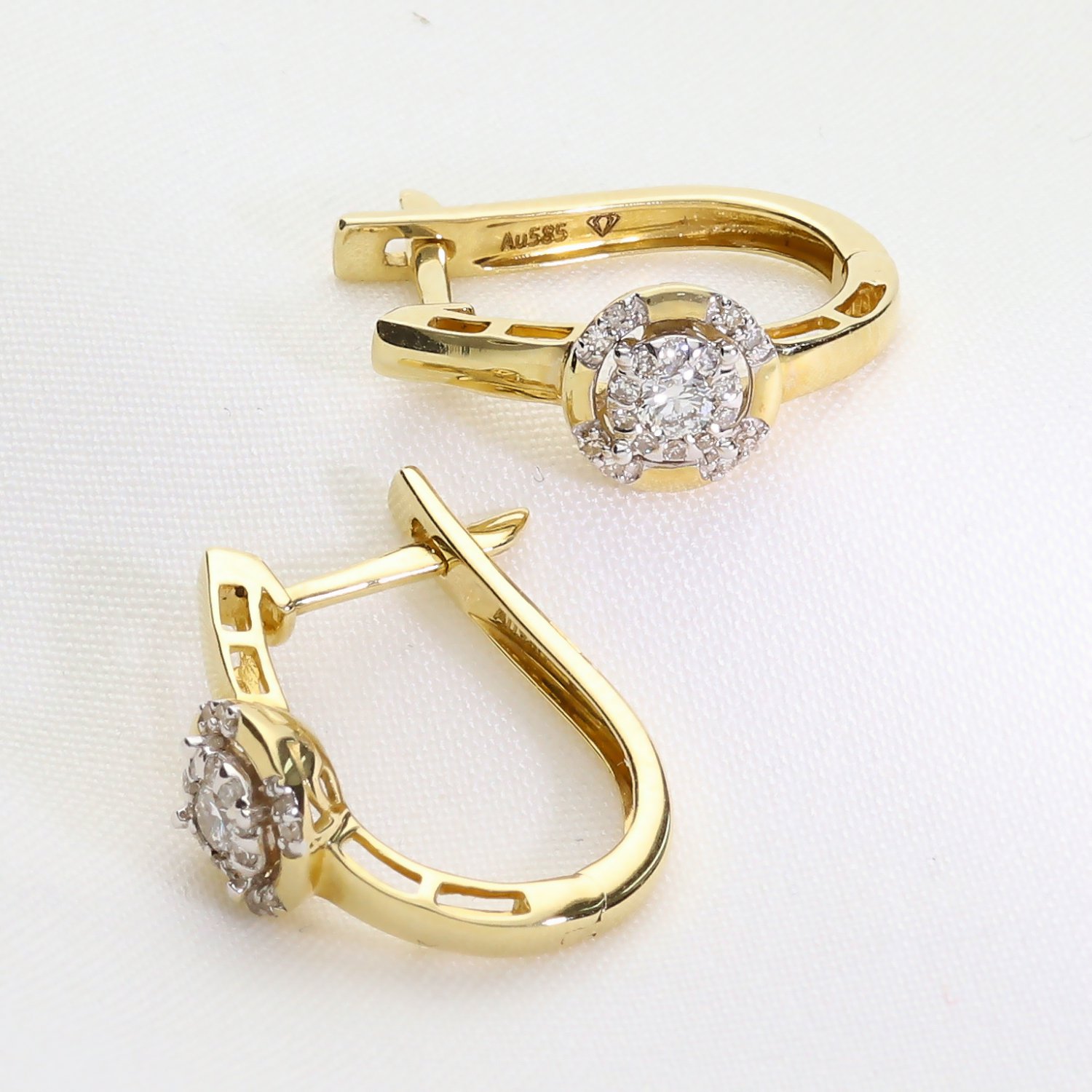 Kategoria: Kolczyki Kruszec: Złoto żółte Kamień: Brylanty, 38 szt. o łącznej masie 0,3 ct. Czystość: SI Barwa: HI Próba: 585 Dla: Niej Masa: 3,34 g.