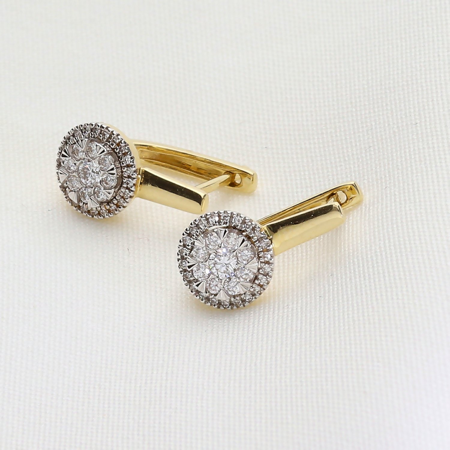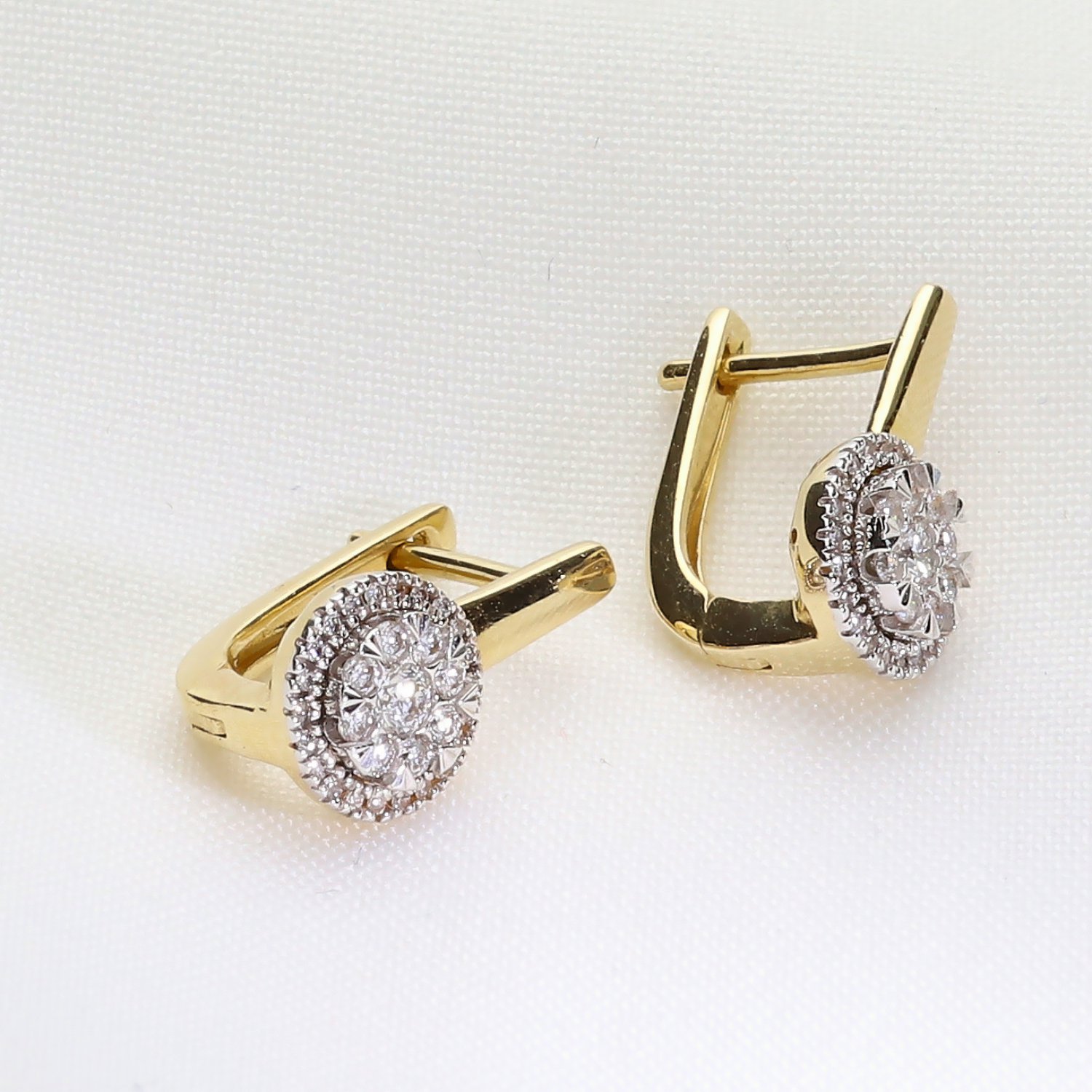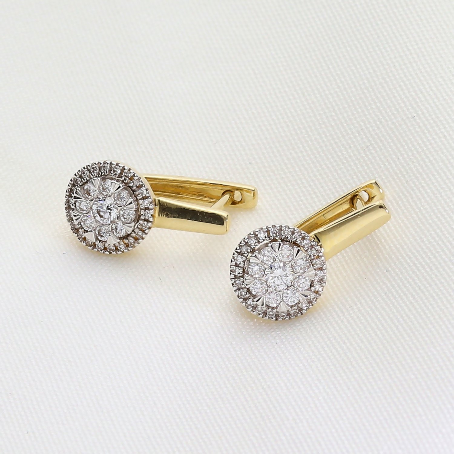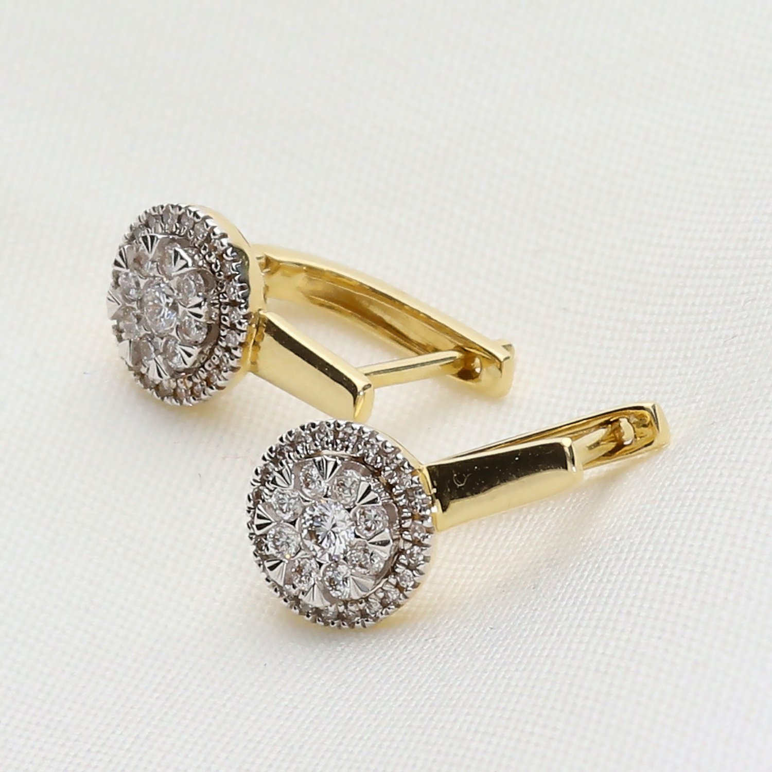 Kategoria: Kolczyki Kruszec: Złoto żółte Kamień: Brylanty, 62 szt. o łącznej masie 0,25 ct. Czystość: SI Barwa: GH Próba: 585 Dla: Niej Masa: 2,44 g.