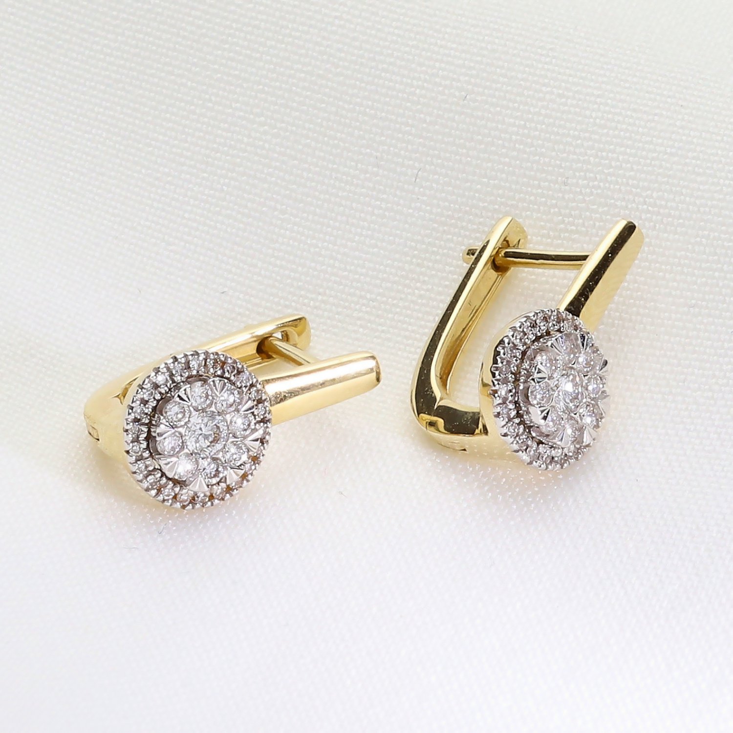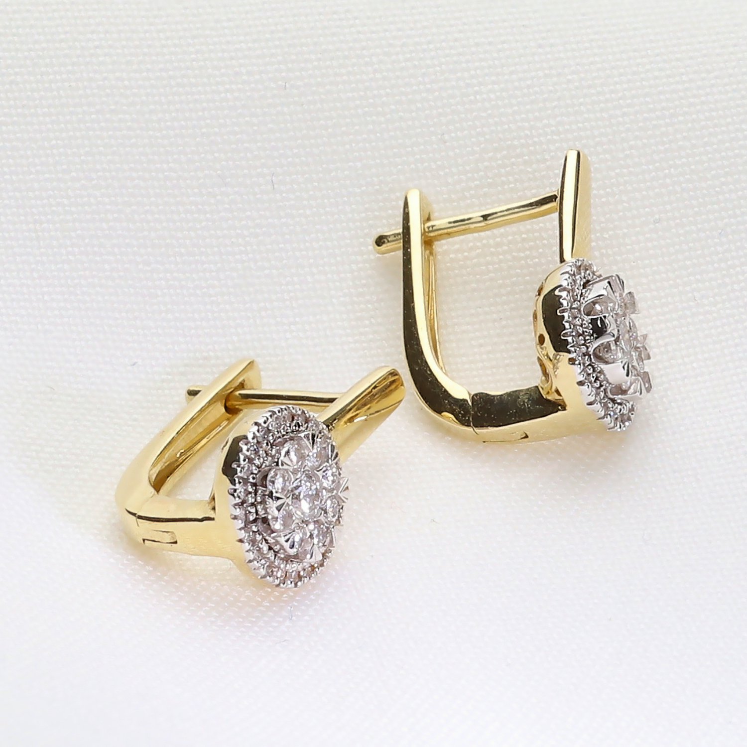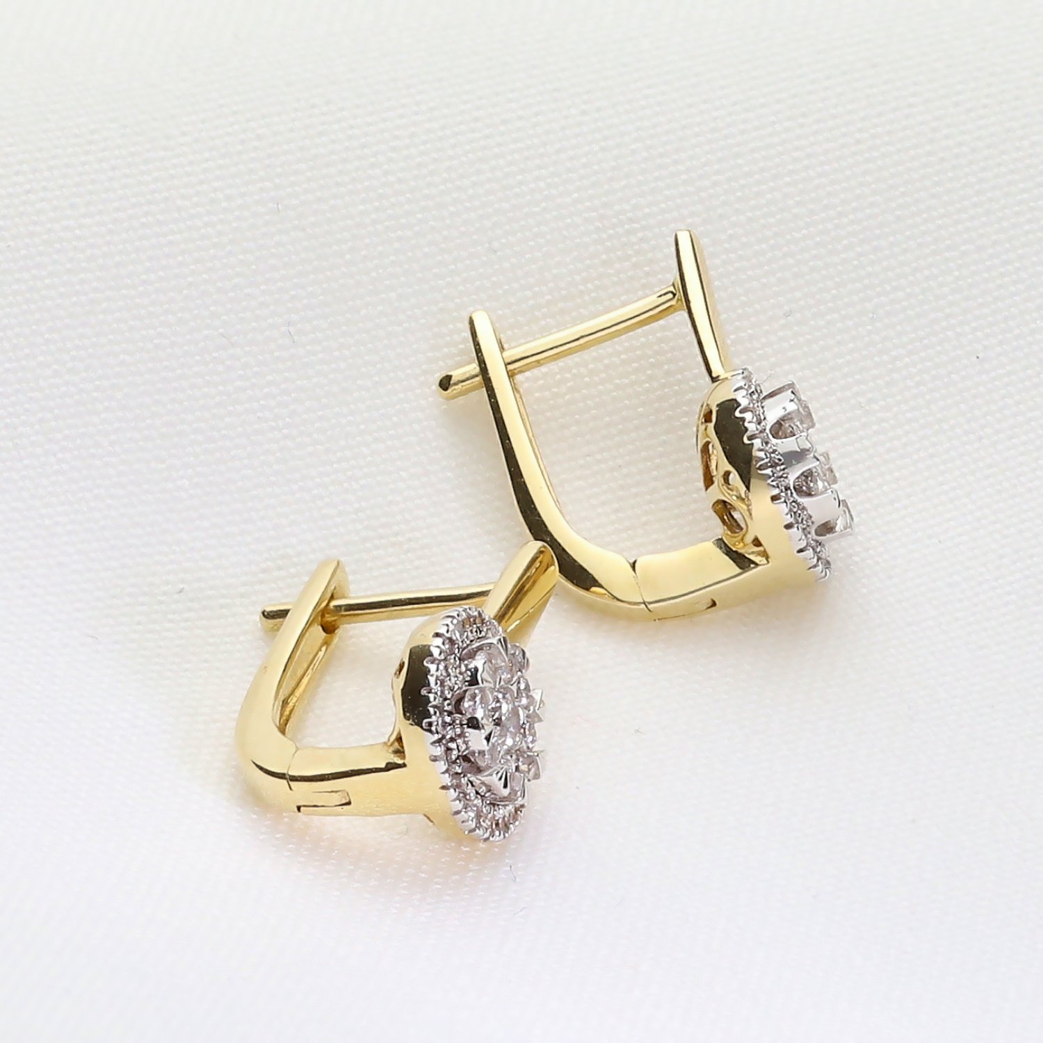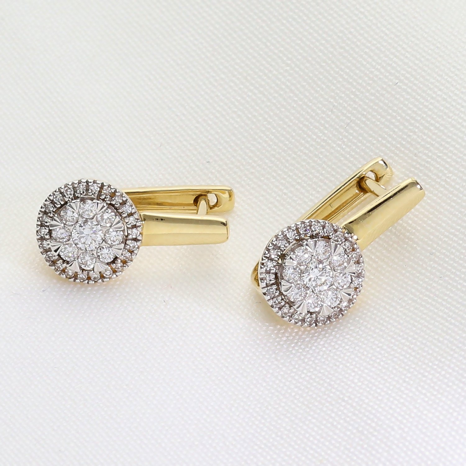 Kategoria: Kolczyki Kruszec: Złoto żółte Kamień: Brylanty, 62 szt. o łącznej masie 0,25 ct. Czystość: SI Barwa: GH Próba: 585 Dla: Niej Masa: 2,44 g.