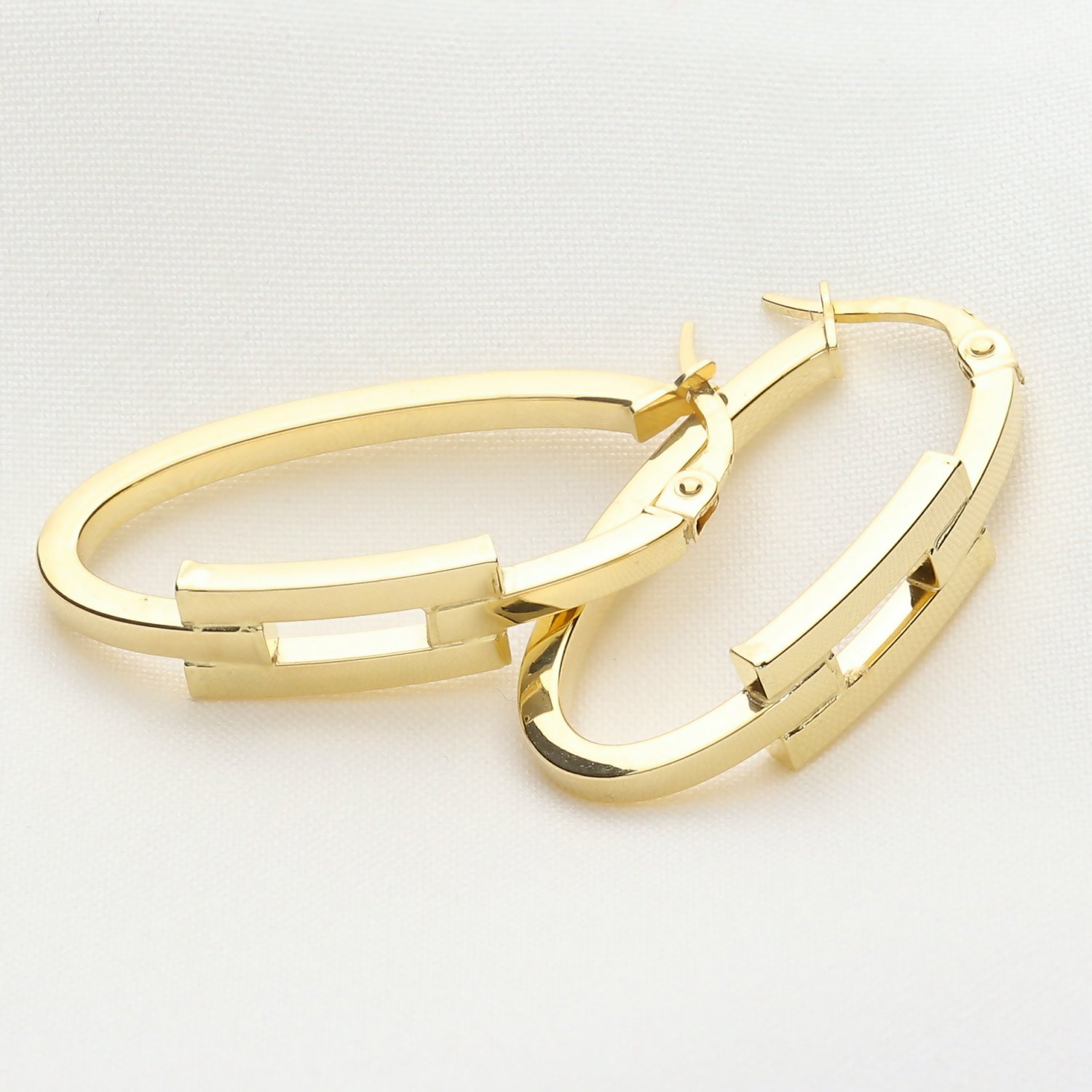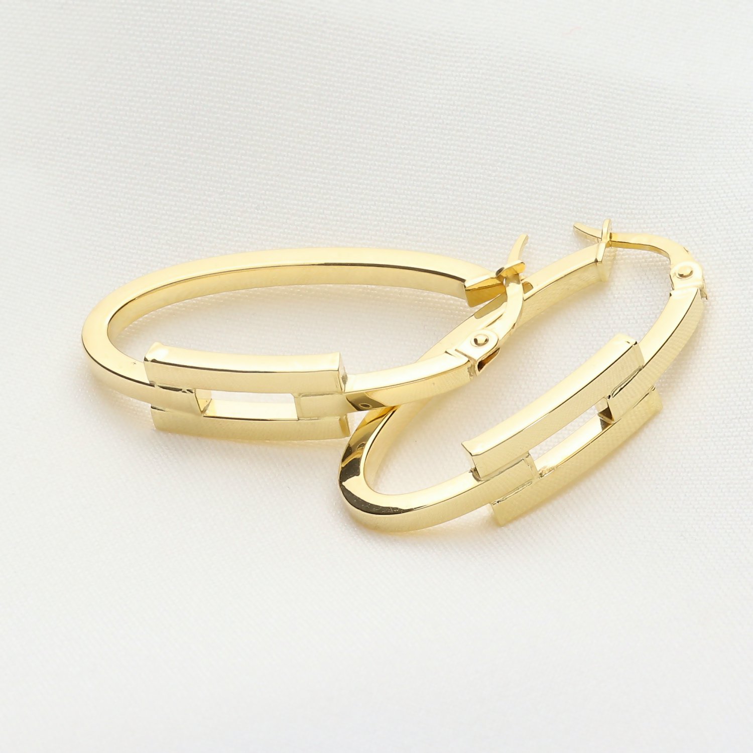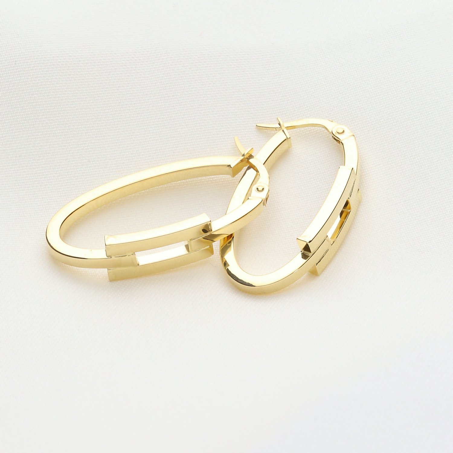 Eleganckie złote kolczyki o wyjątkowym, geometrycznym kształcie. Wykonane z wysokiej jakości złota, zachwycają prostotą i nowoczesnym designem. Delikatne, ale jednocześnie wyraziste — idealne zarówno do codziennych stylizacji, jak i na wyjątkowe okazje. Ich subtelny połysk i precyzyjne wykończenie podkreślają klasę i dobry gust właścicielki.