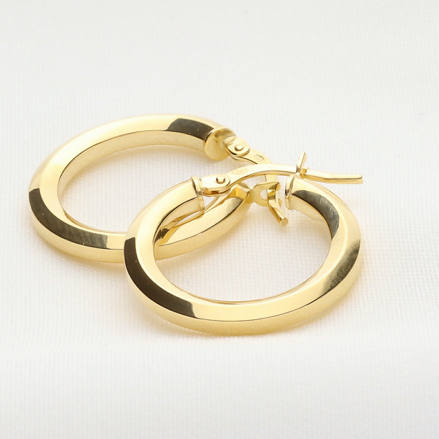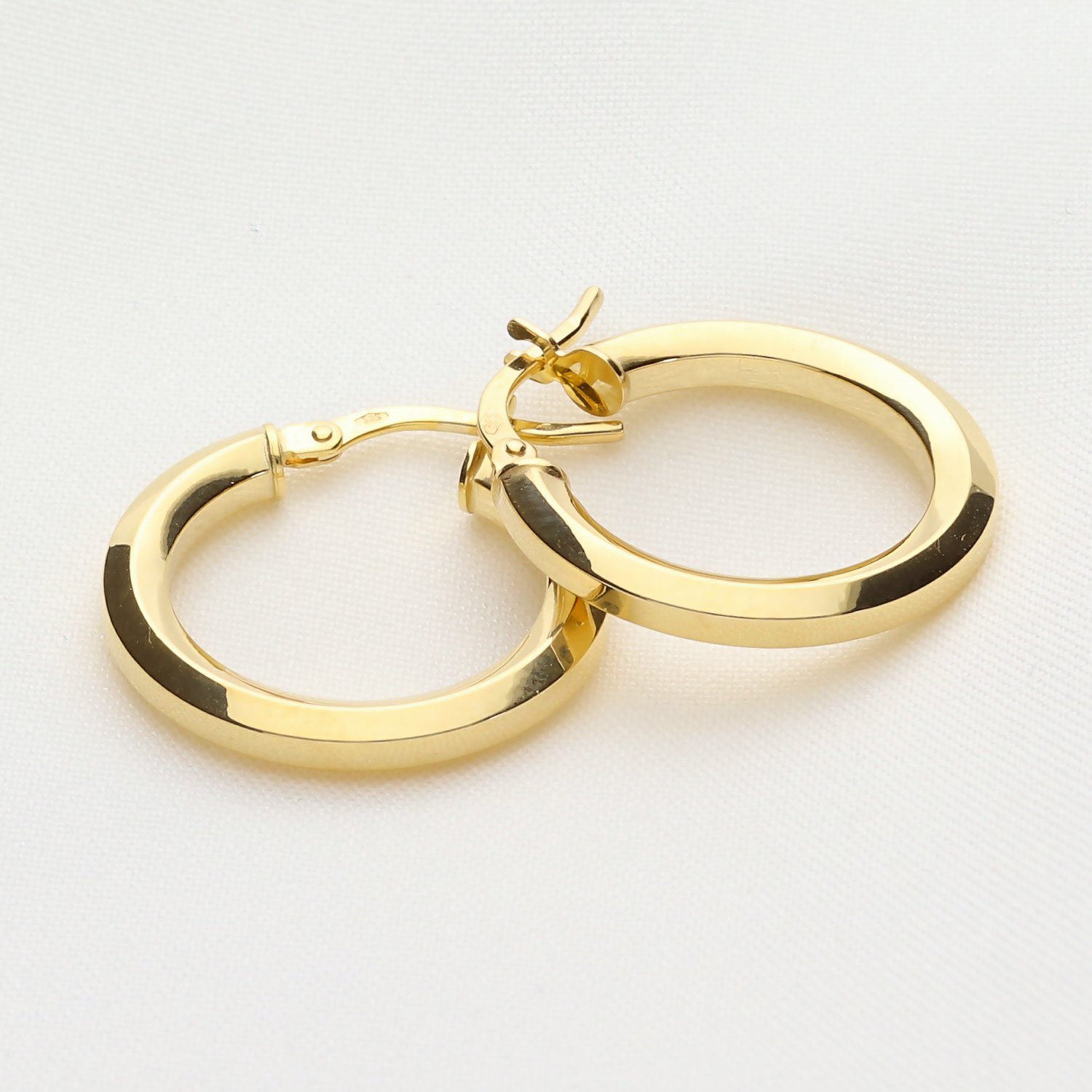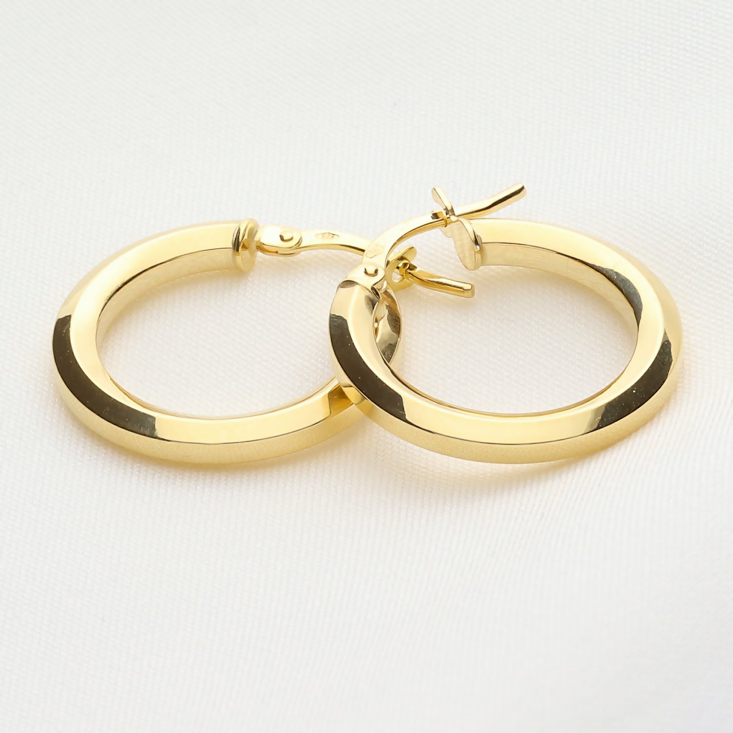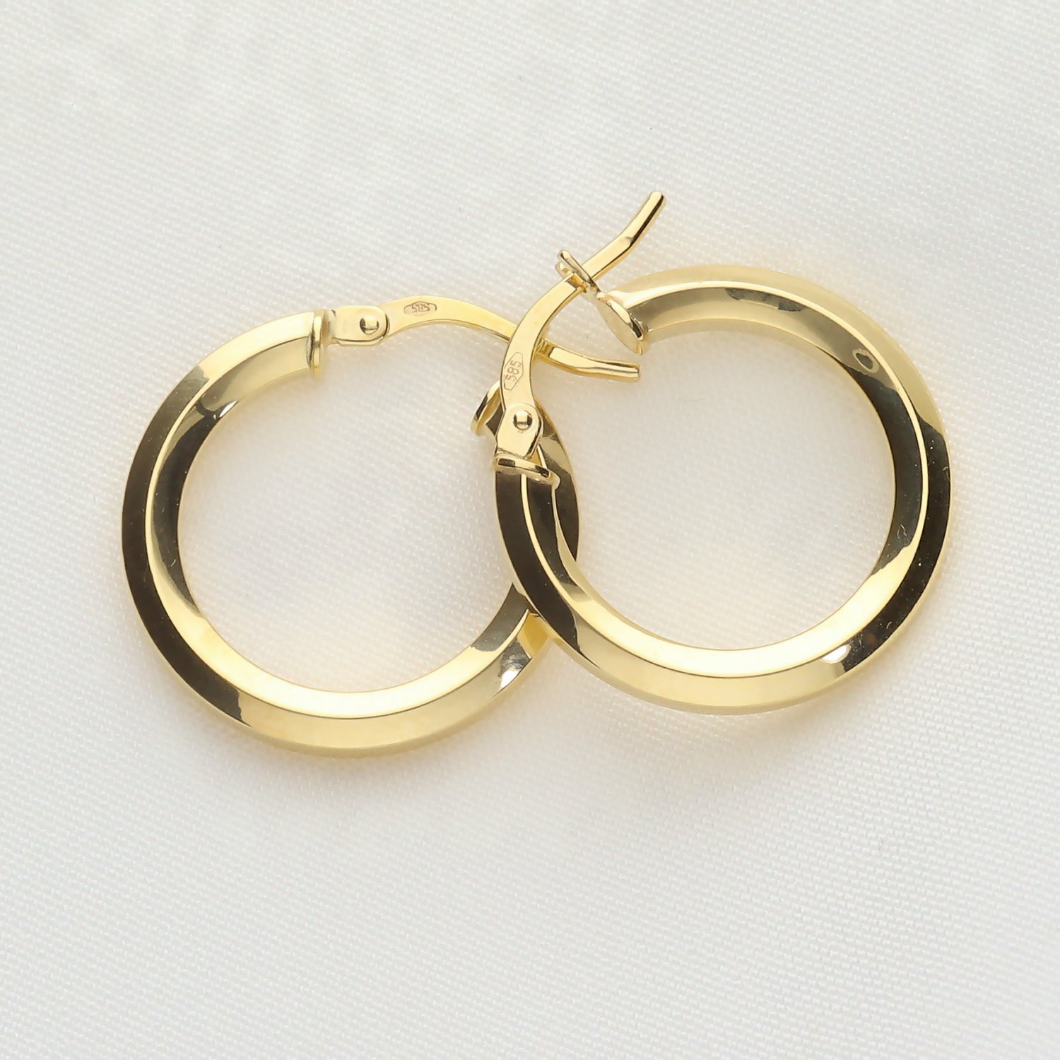 Kategoria: Kolczyki Kruszec: Złoto żółte Próba: 585 Dla: Niej Wymiary: Średnica 20 mm. Masa: 1,57 g.