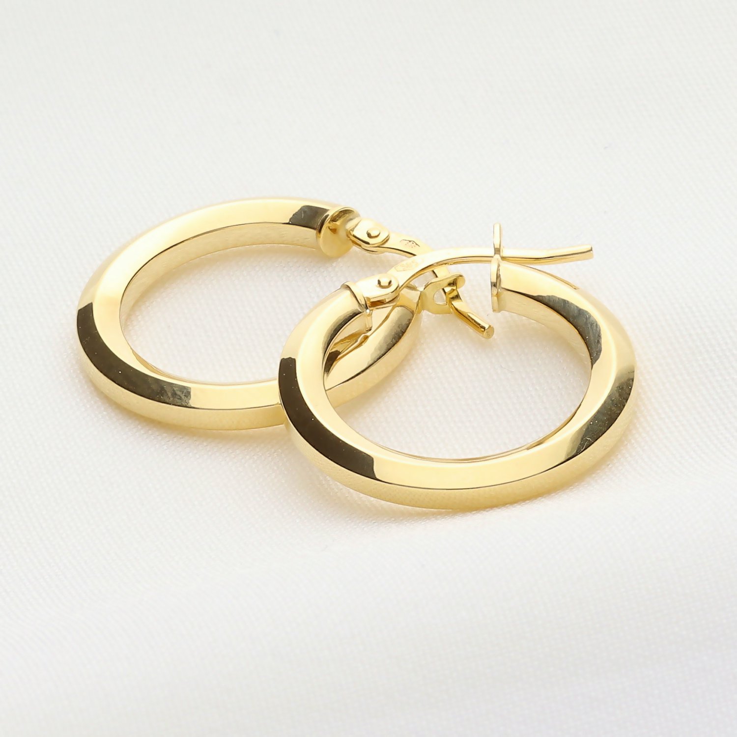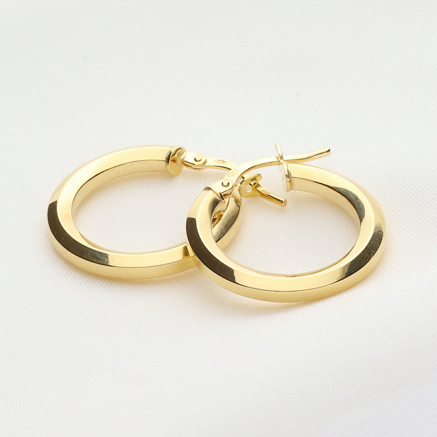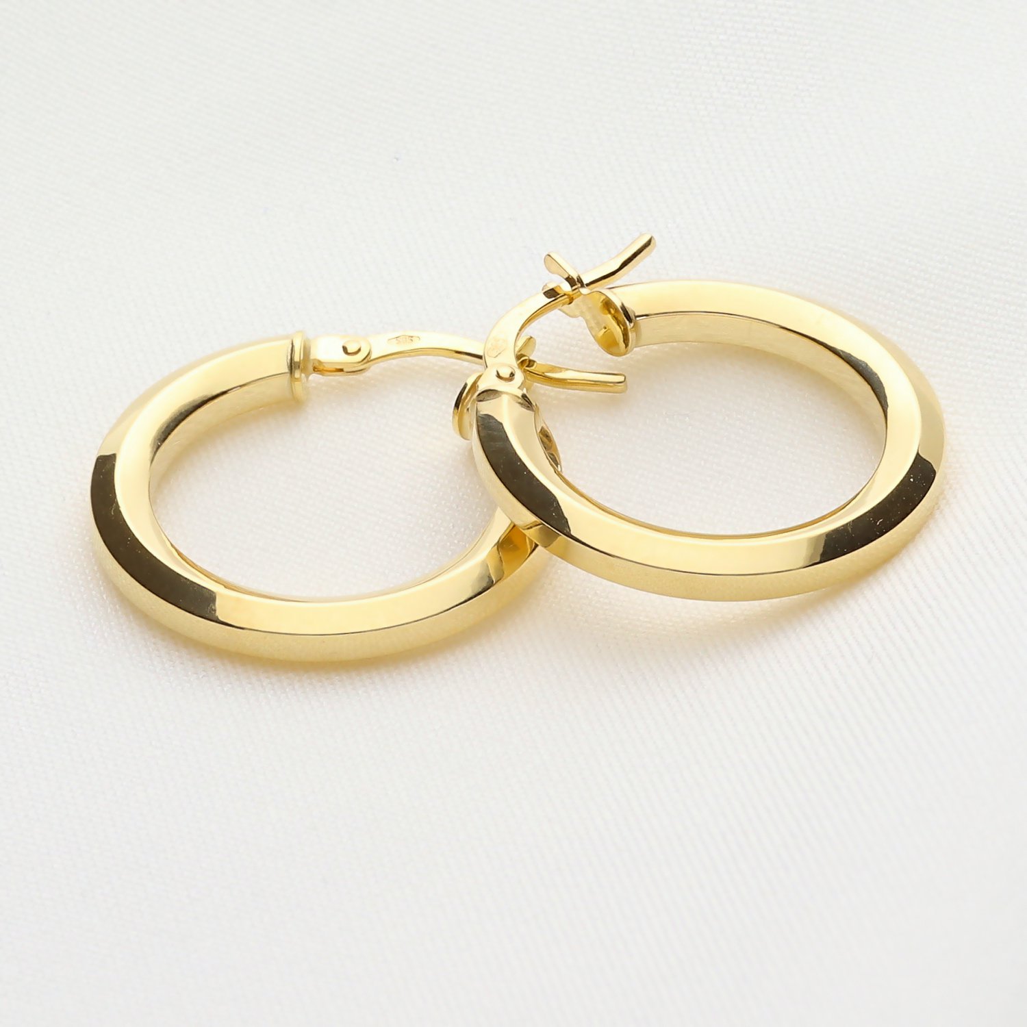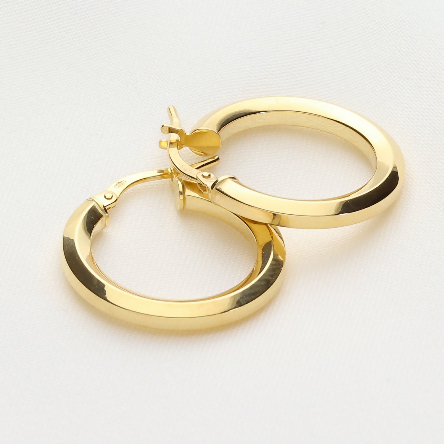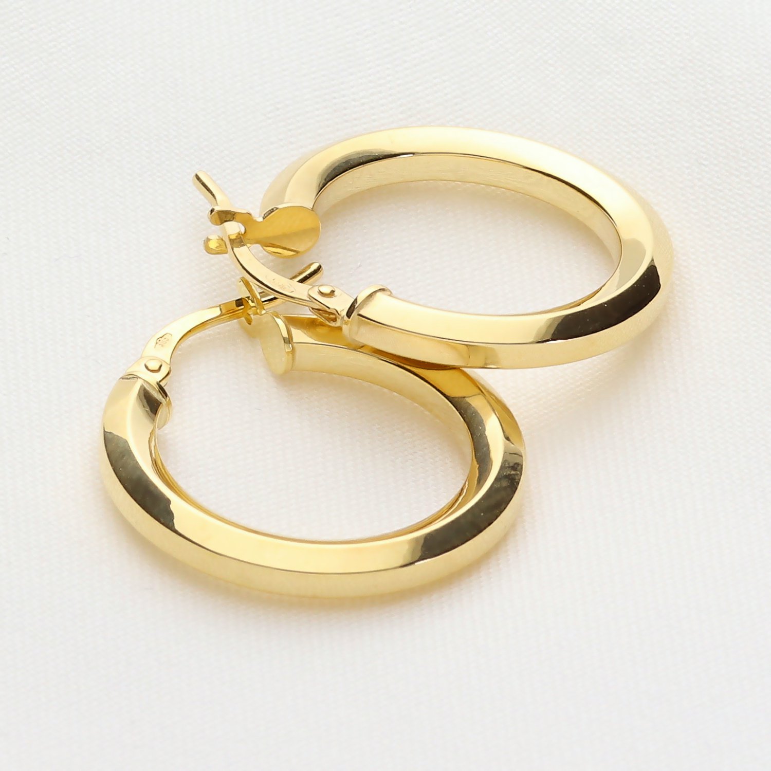 Kategoria: Kolczyki Kruszec: Złoto żółte Próba: 585 Dla: Niej Wymiary: Średnica 20 mm. Masa: 1,57 g.