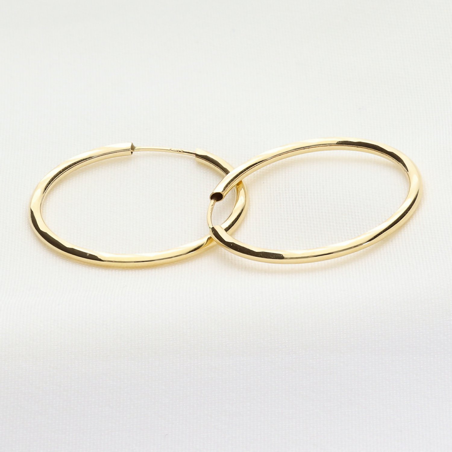 Kategoria: Kolczyki Kruszec: Złoto żółte Próba: 585 Dla: Niej Wymiary: Średnica 25 mm. Masa: 1,14 g.