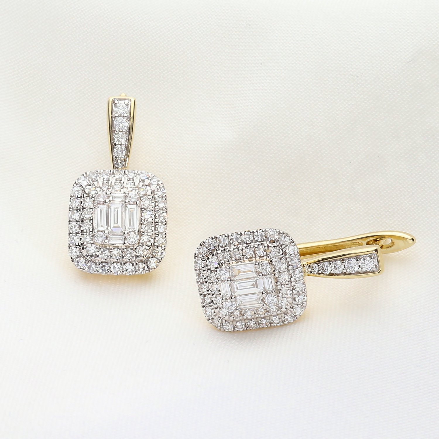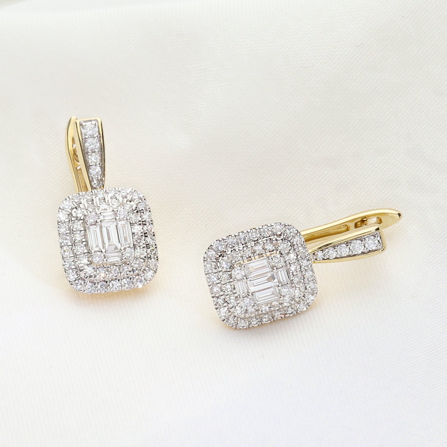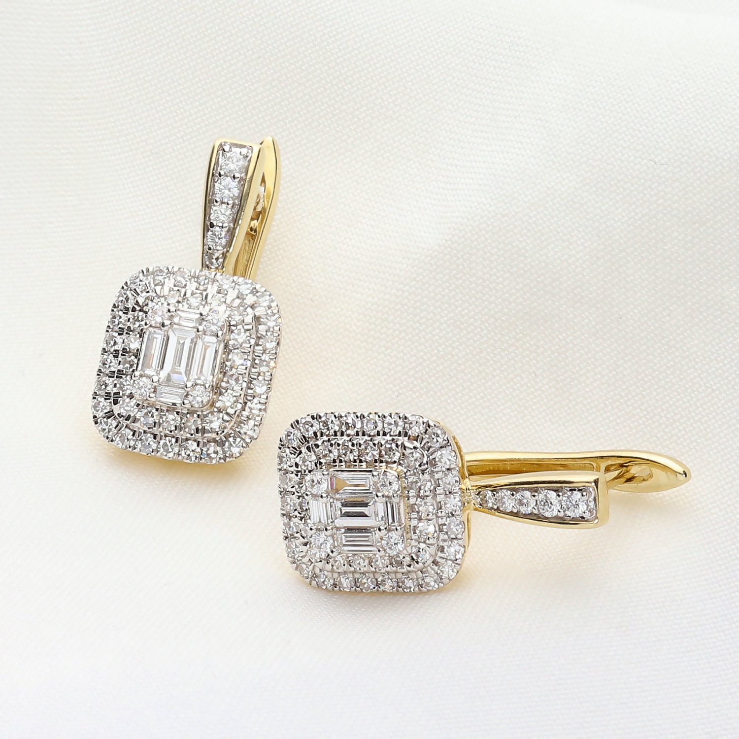 Luksusowe Złote Kolczyki z Diamentami – Kwadratowe Halo z Bagietami 0070267298