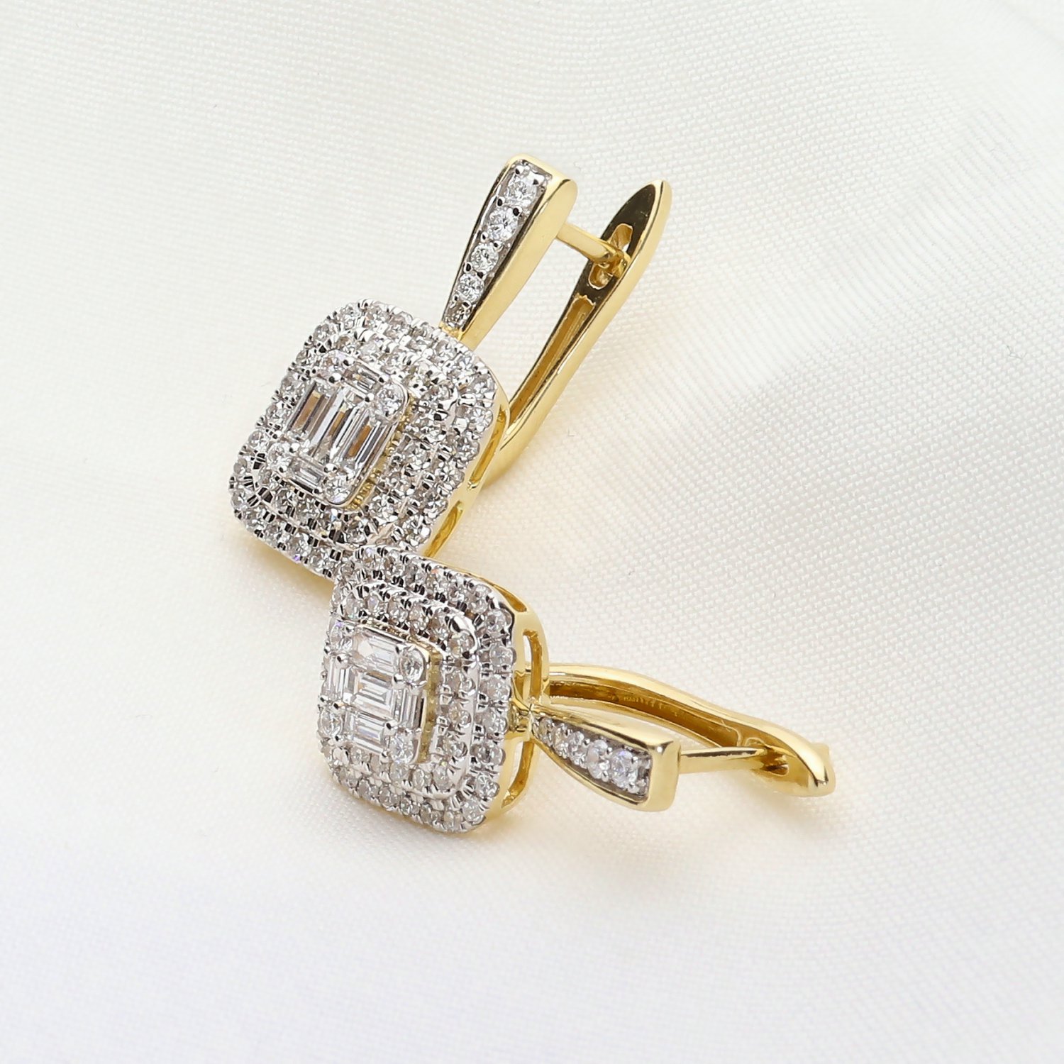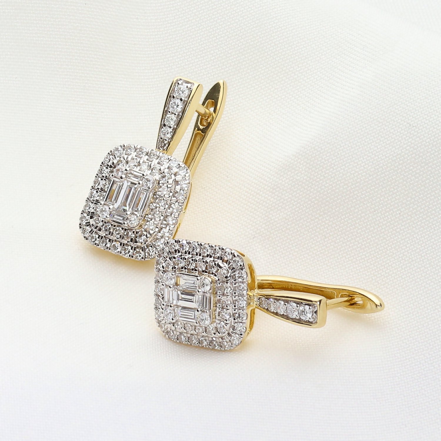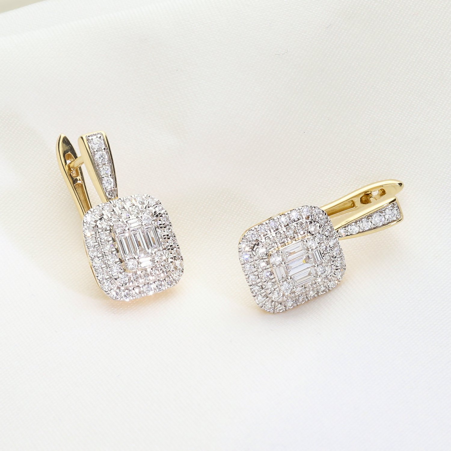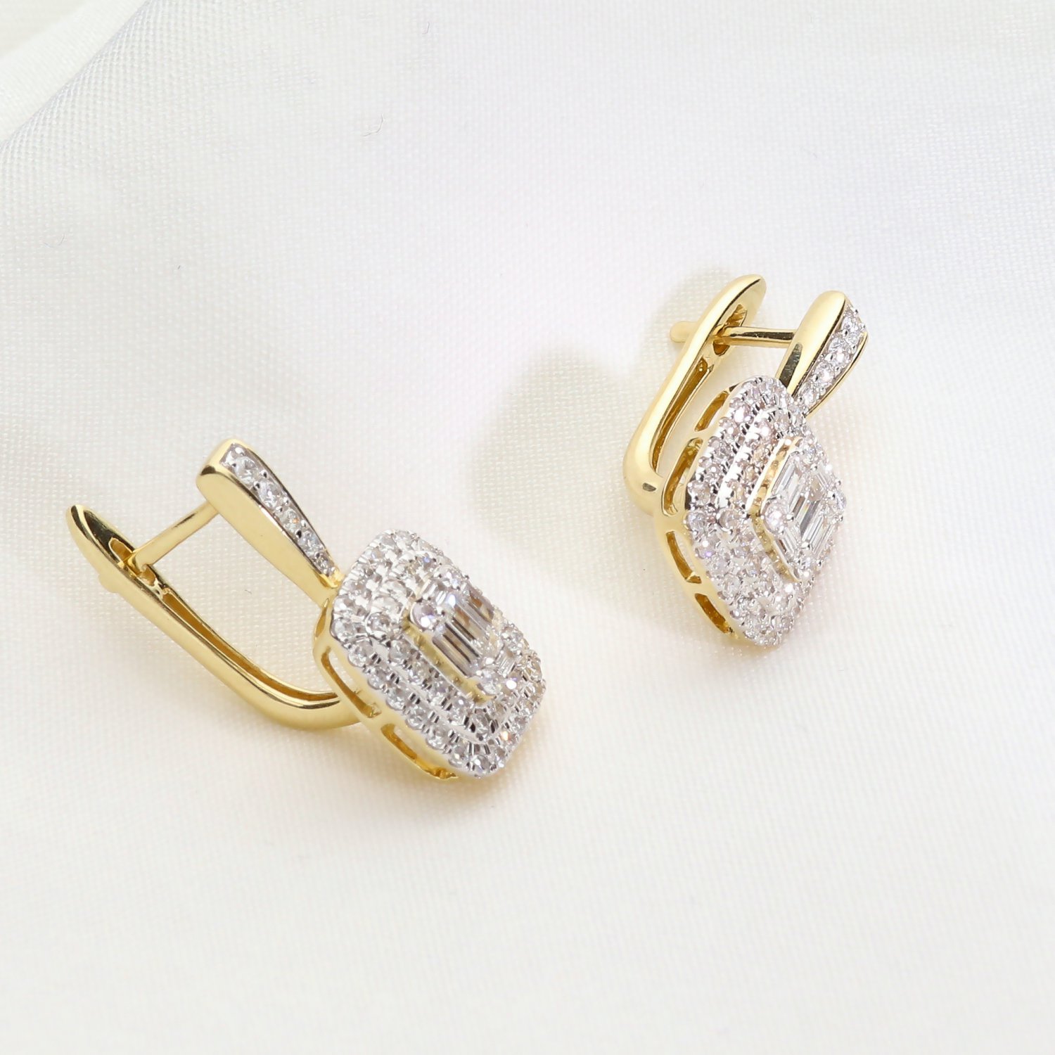 Luksusowe Złote Kolczyki z Diamentami – Kwadratowe Halo z Bagietami 0070267298