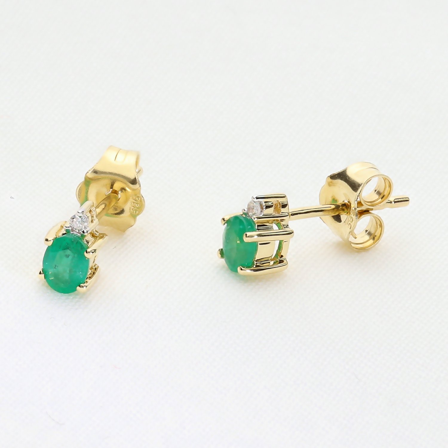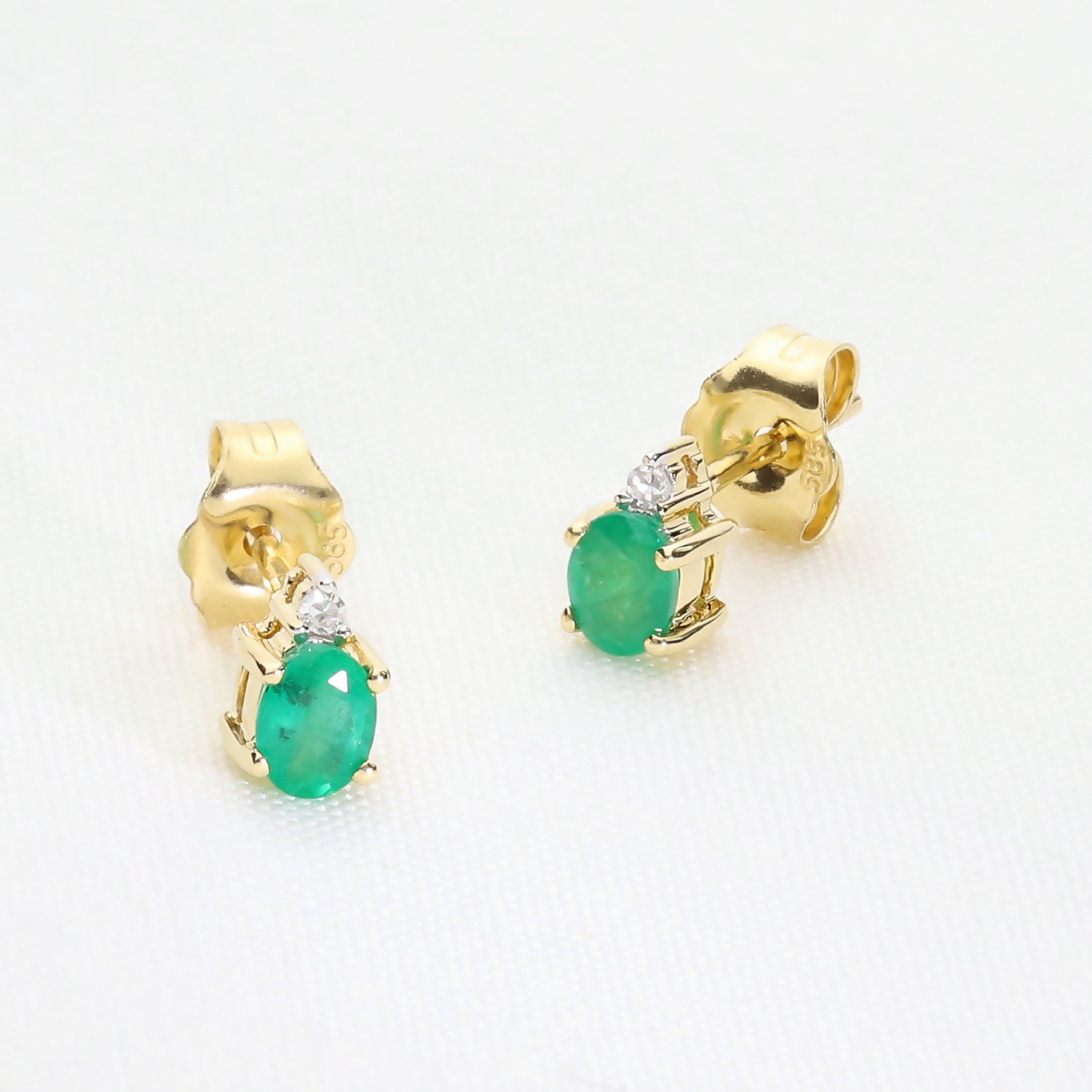 Eleganckie złote kolczyki sztyfty ze szmaragdami i brylantami 0070268936