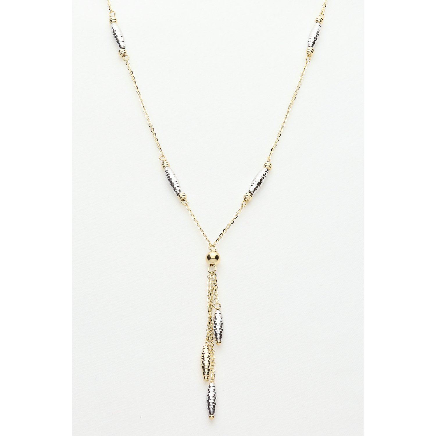 Złoty Naszyjnik Lariat Diamentowany - Dwukolorowa Zawieszka Krawat - Próba Złota 585
