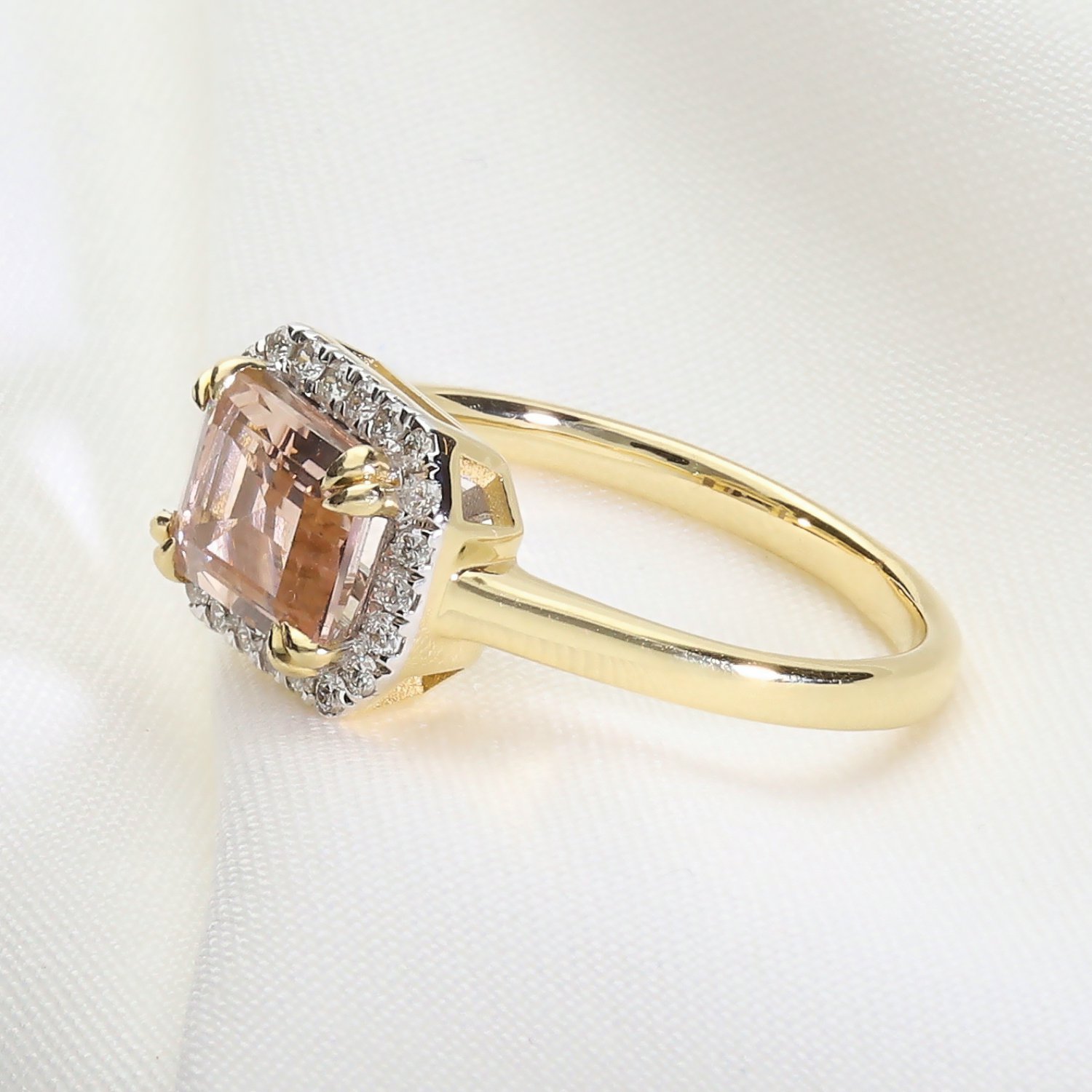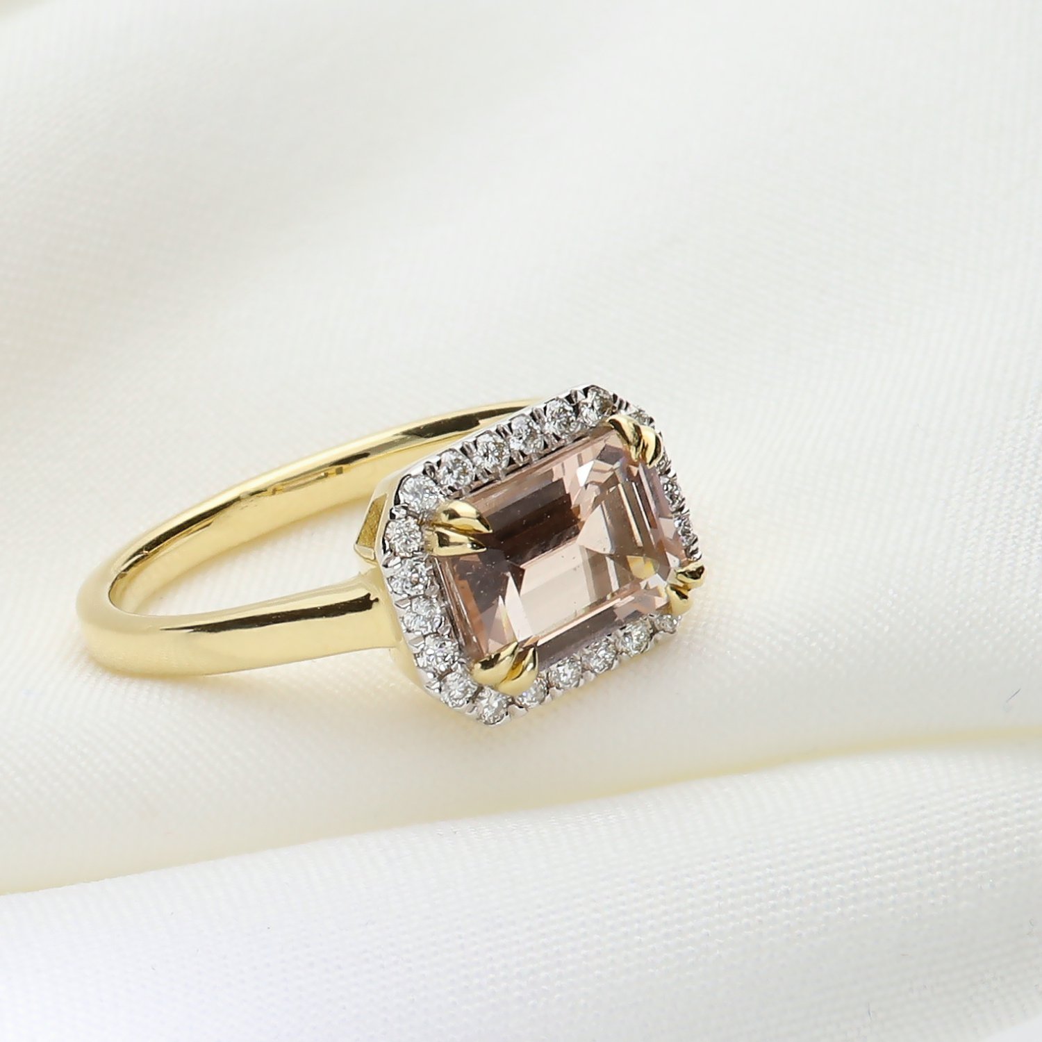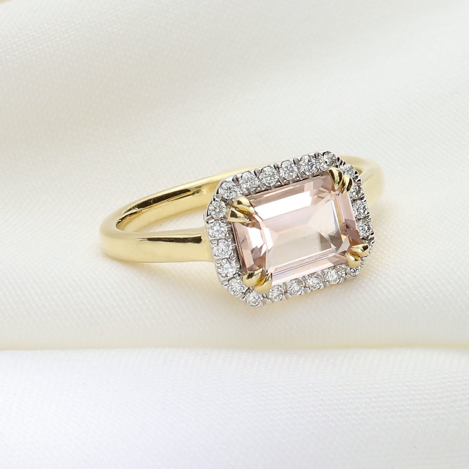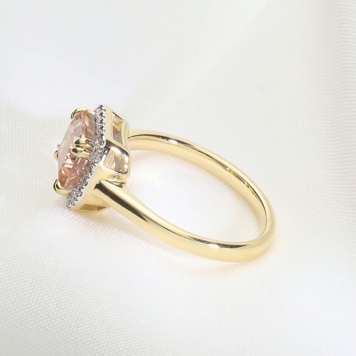 Pierścionek z morganitem i brylantami w żółtym złocie – elegancja i blask