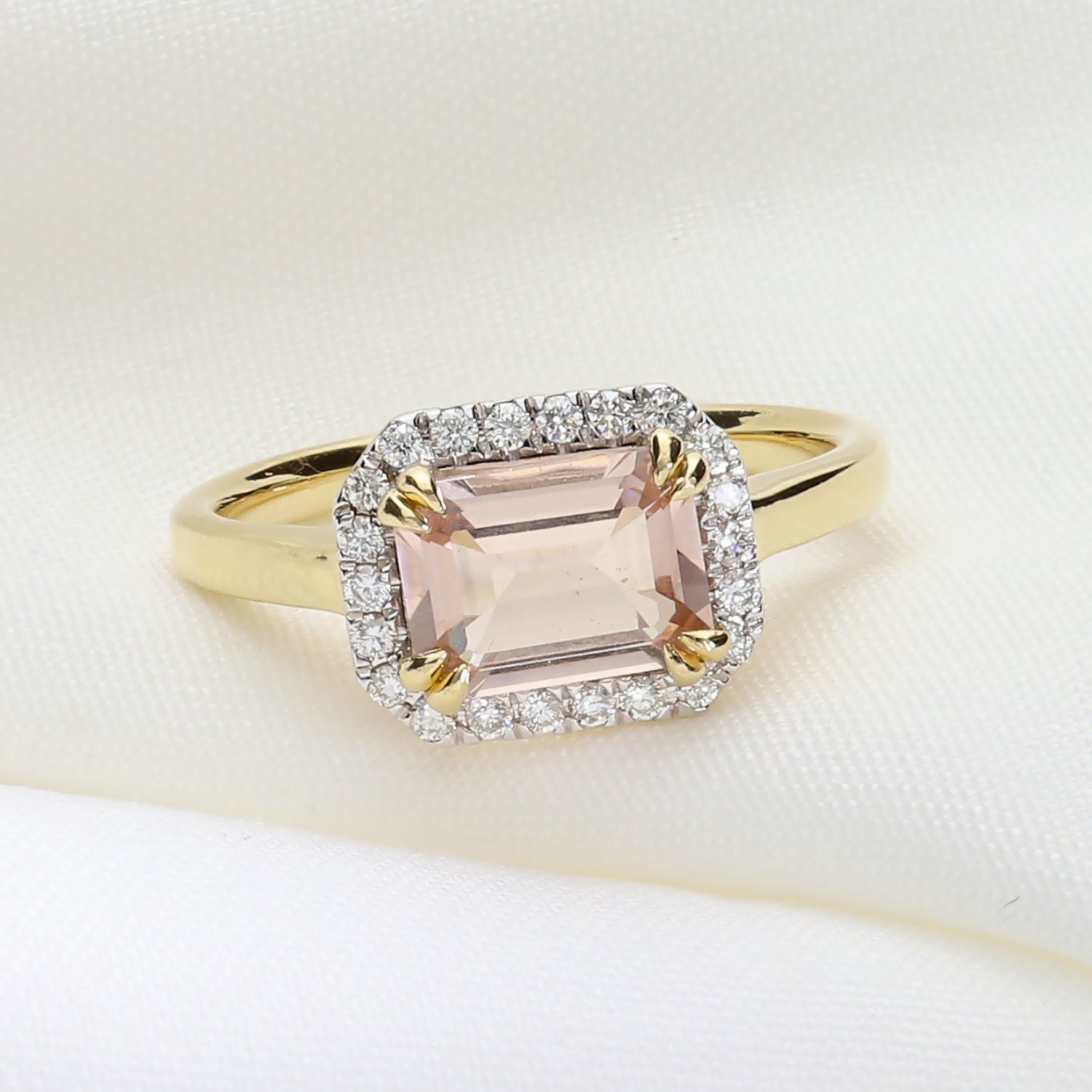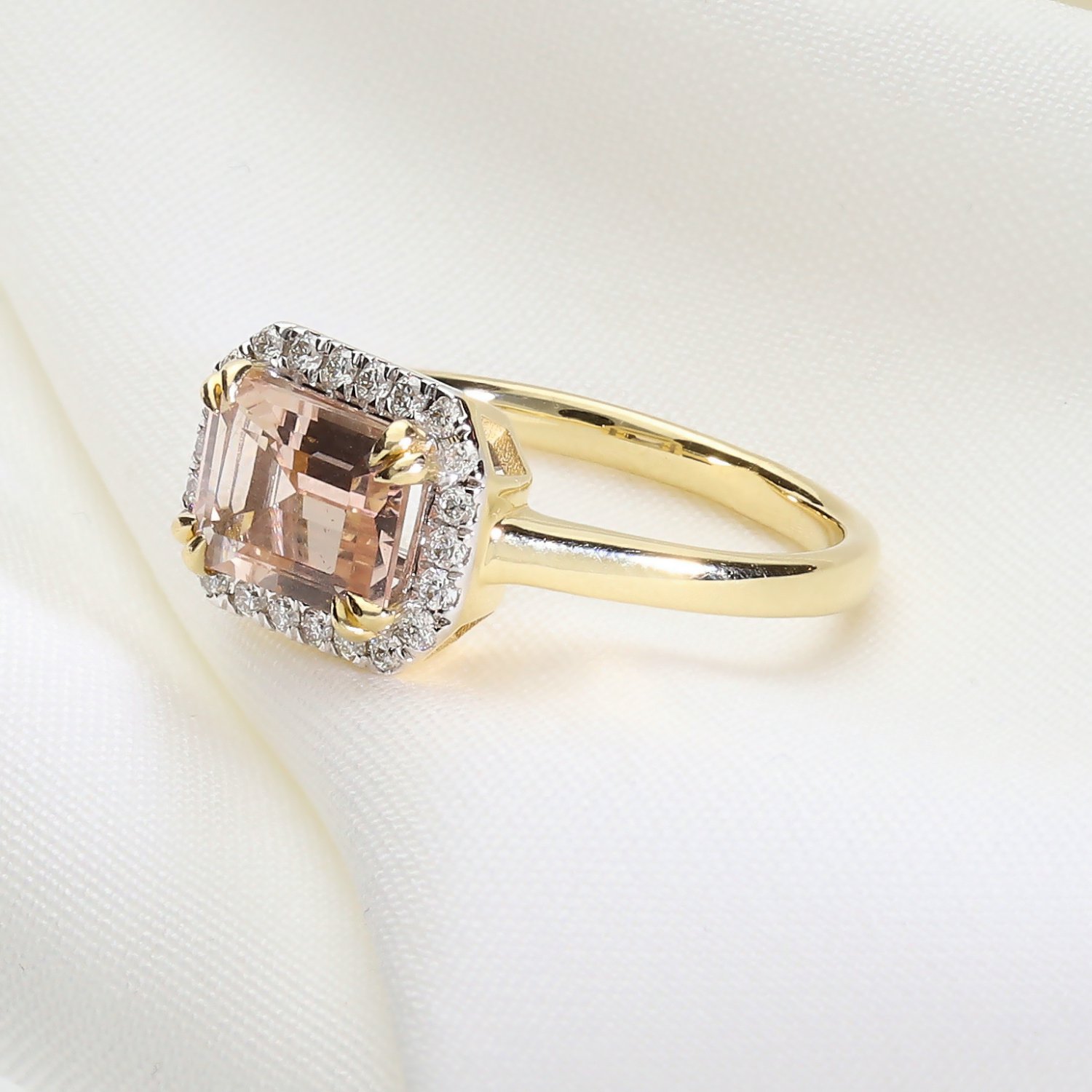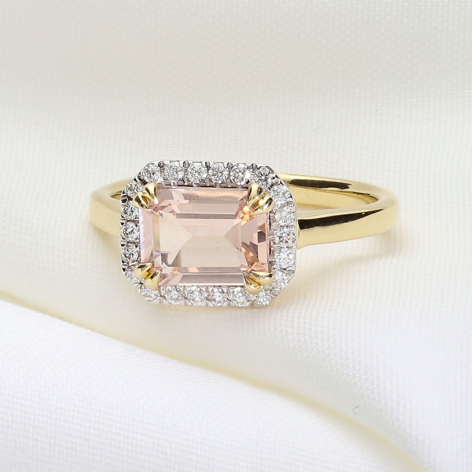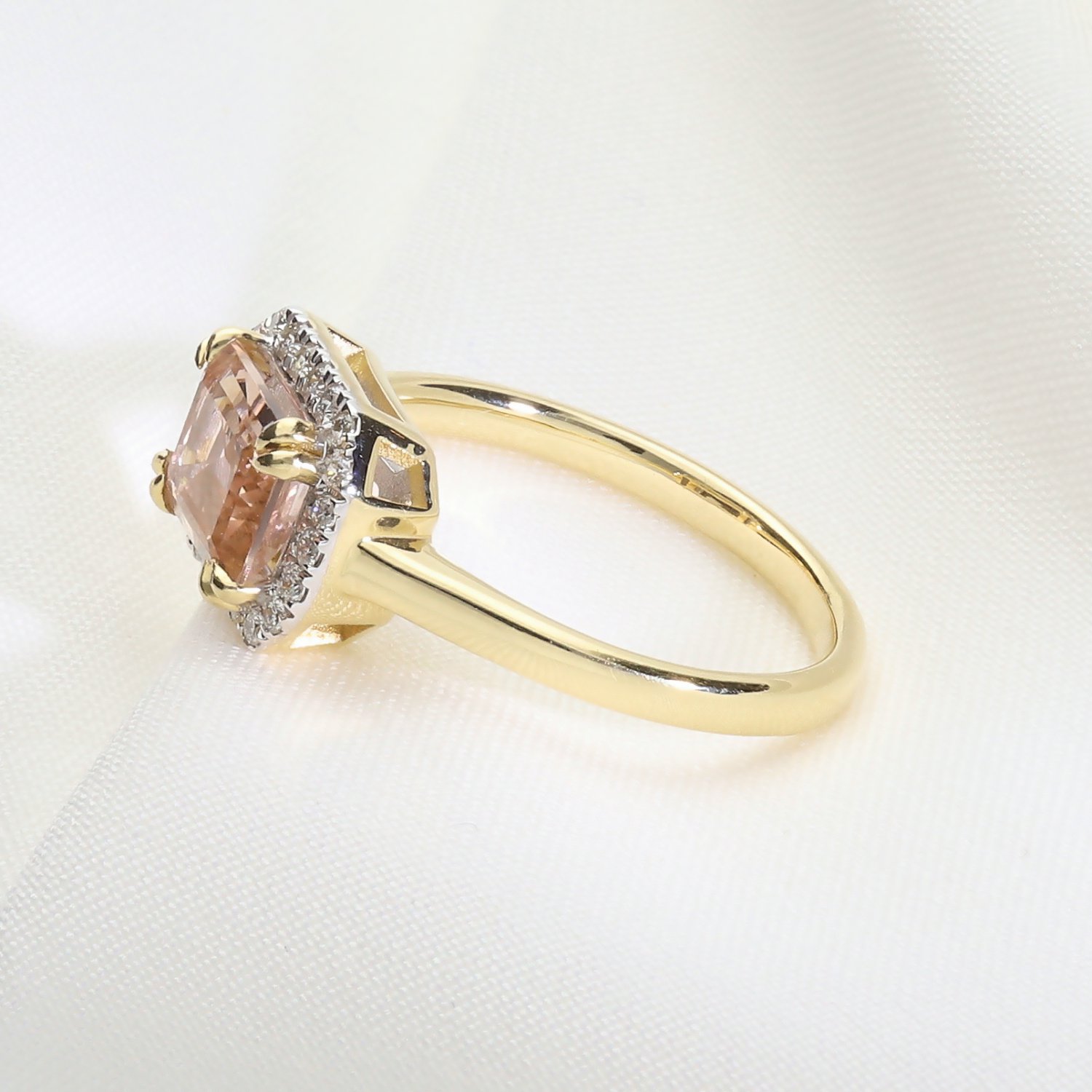Pierścionek z morganitem i brylantami w żółtym złocie – elegancja i blask