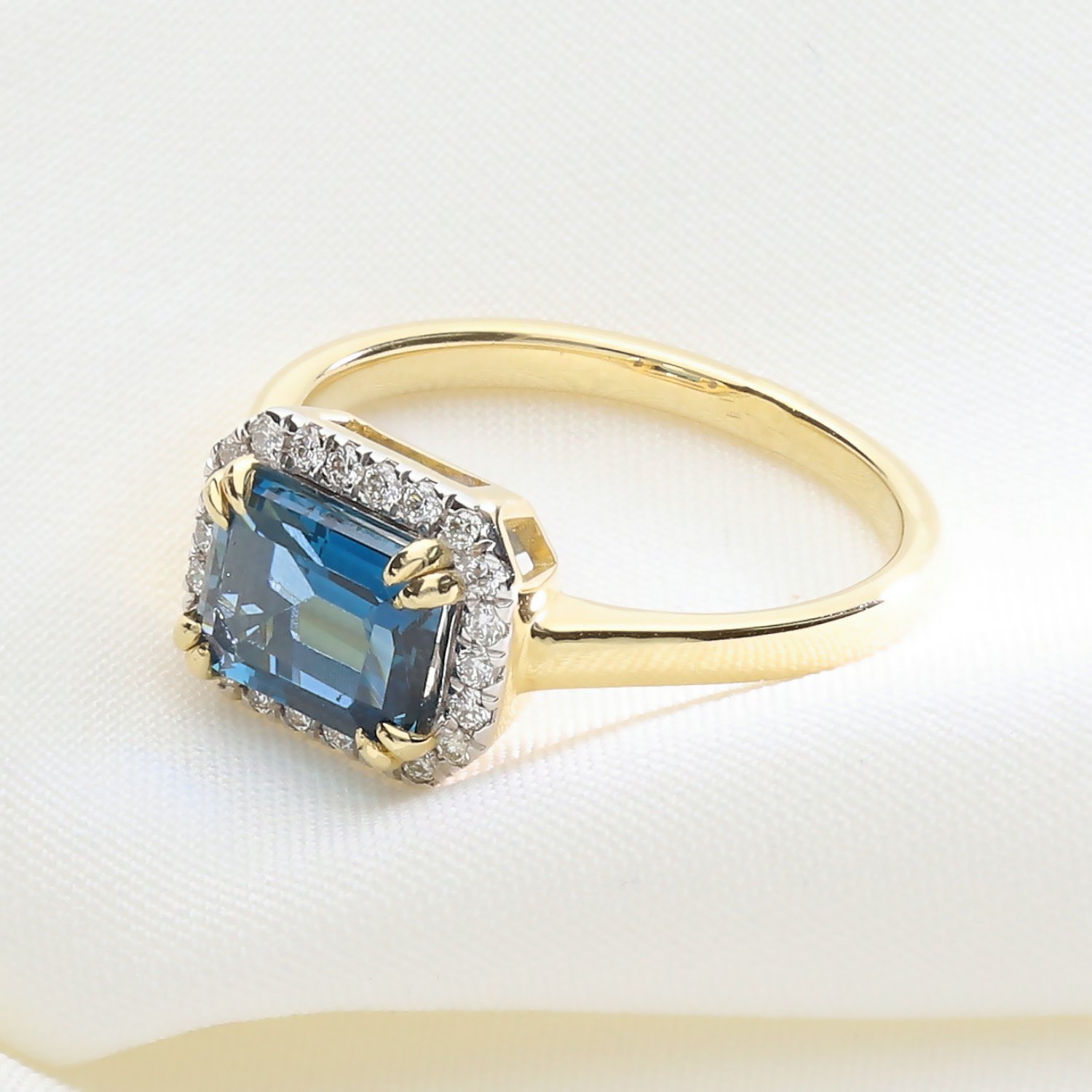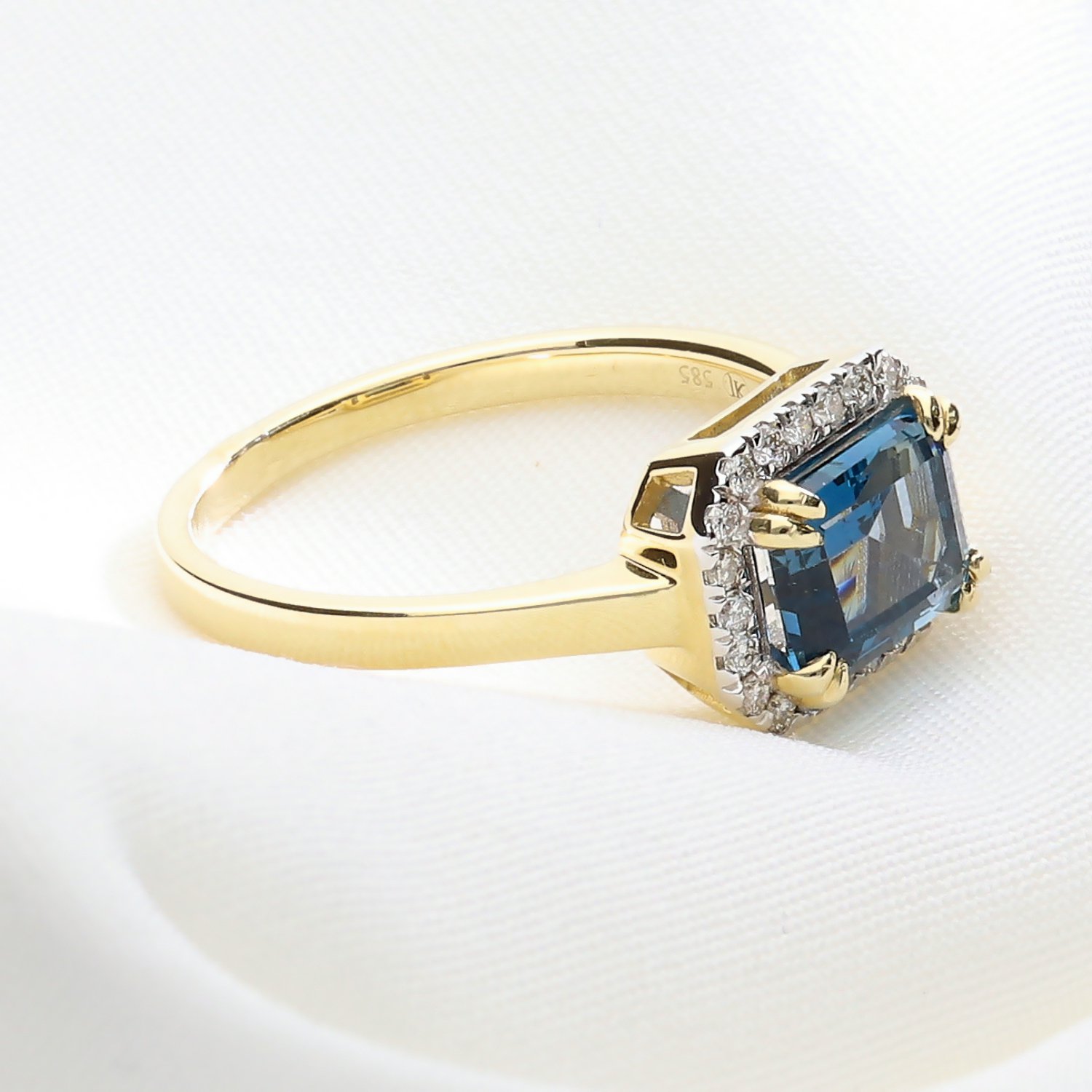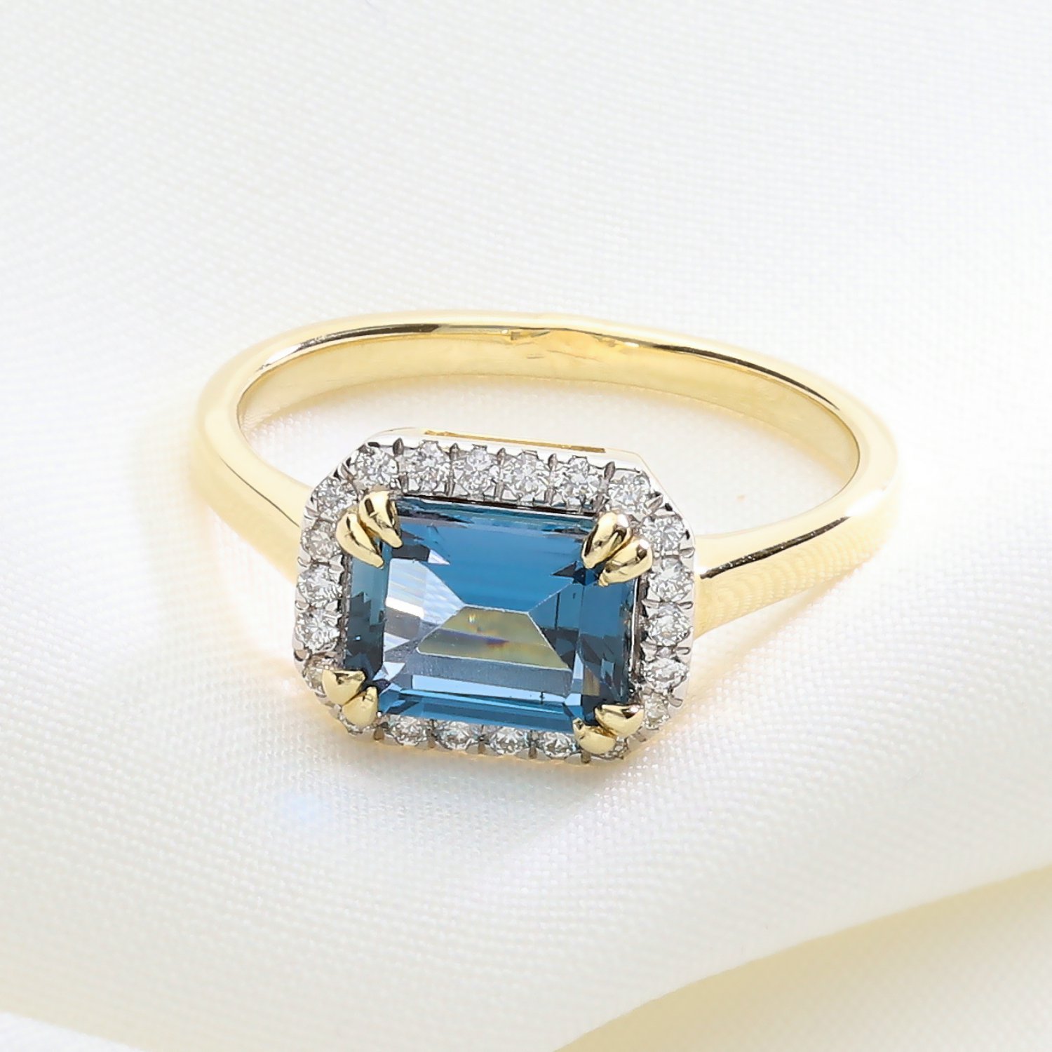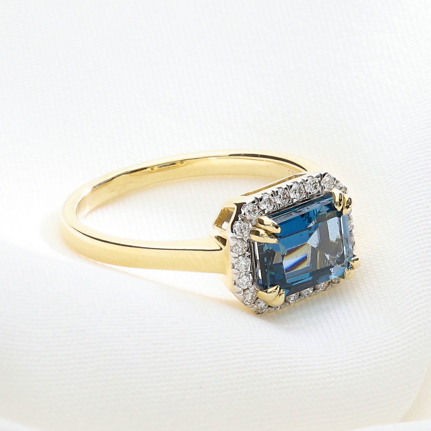 Złoty pierścionek z topazem London Blue i brylantami – elegancja i luksus | Adoro