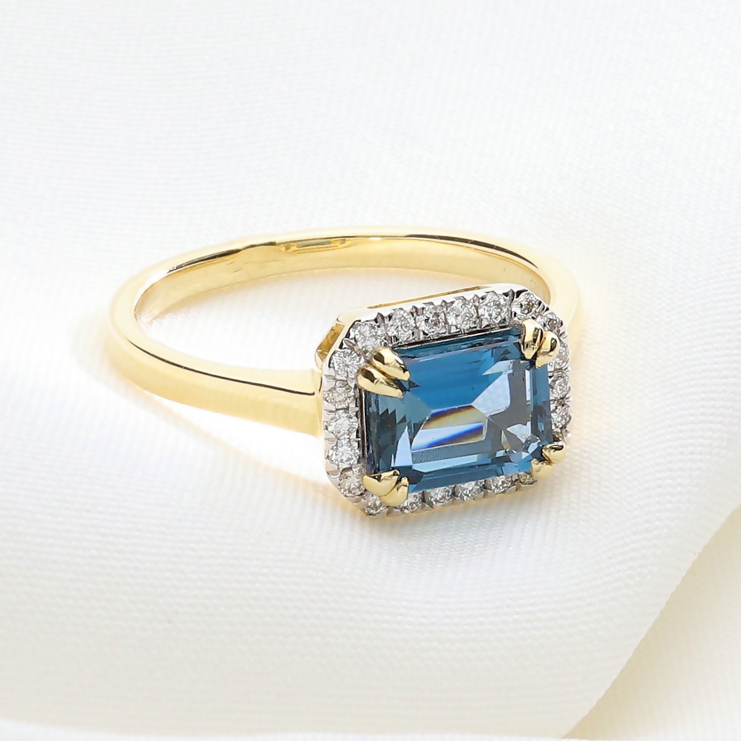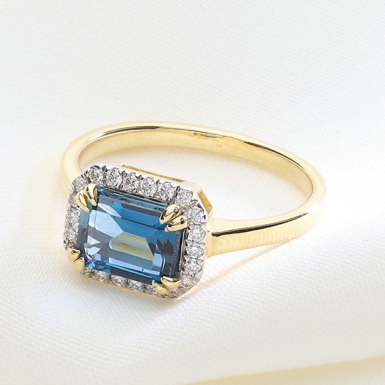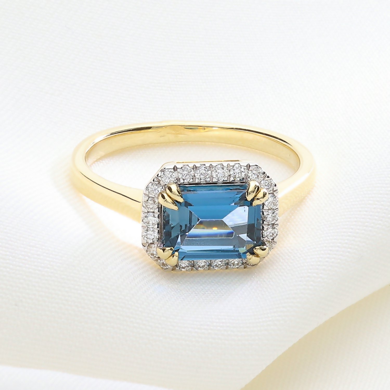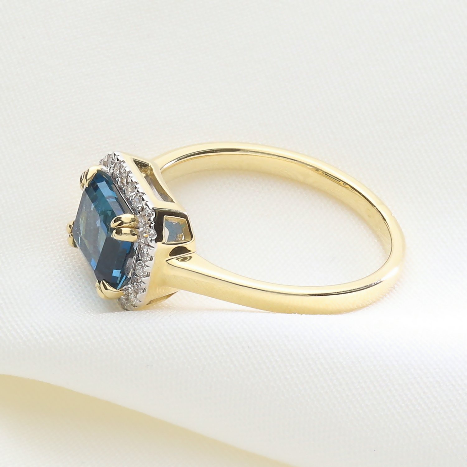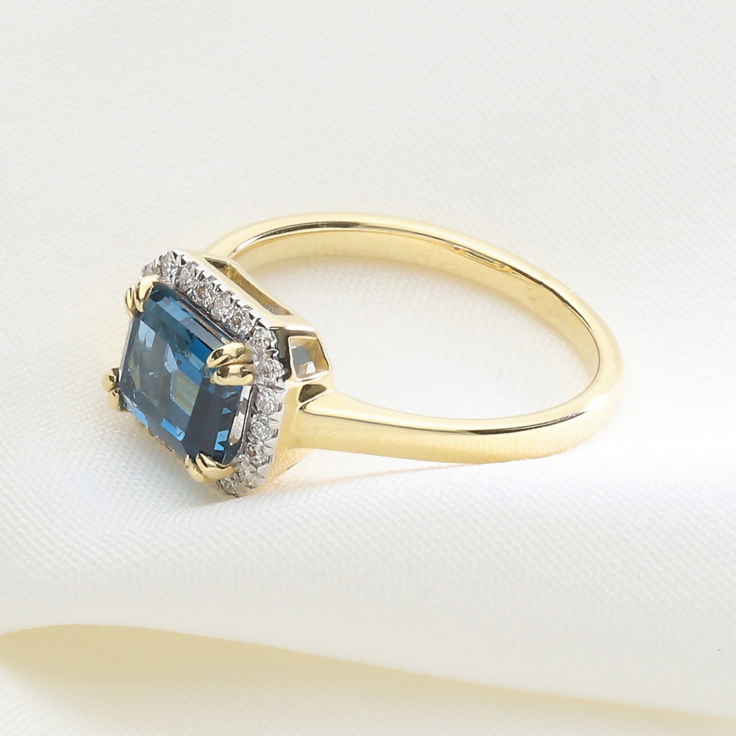 Złoty pierścionek z topazem London Blue i brylantami – elegancja i luksus | Adoro