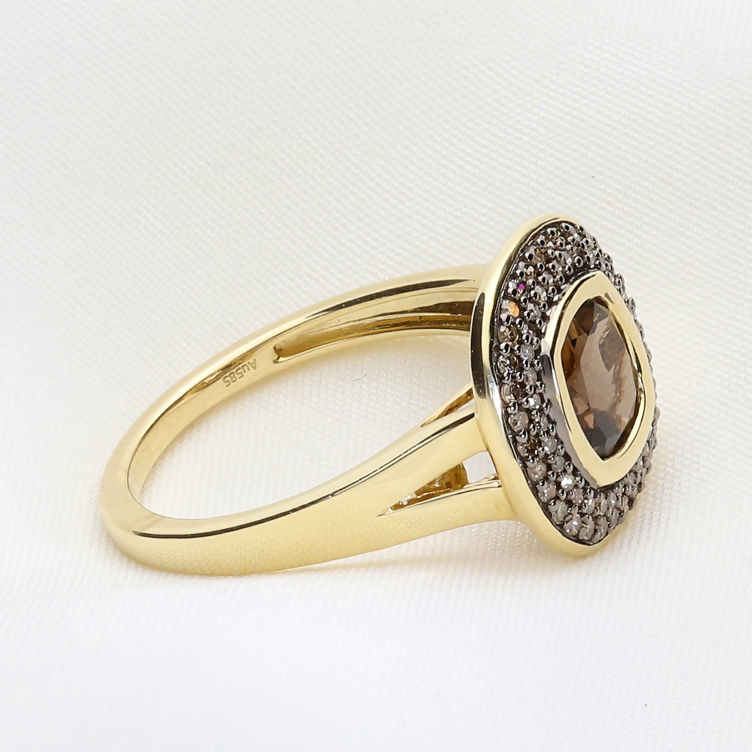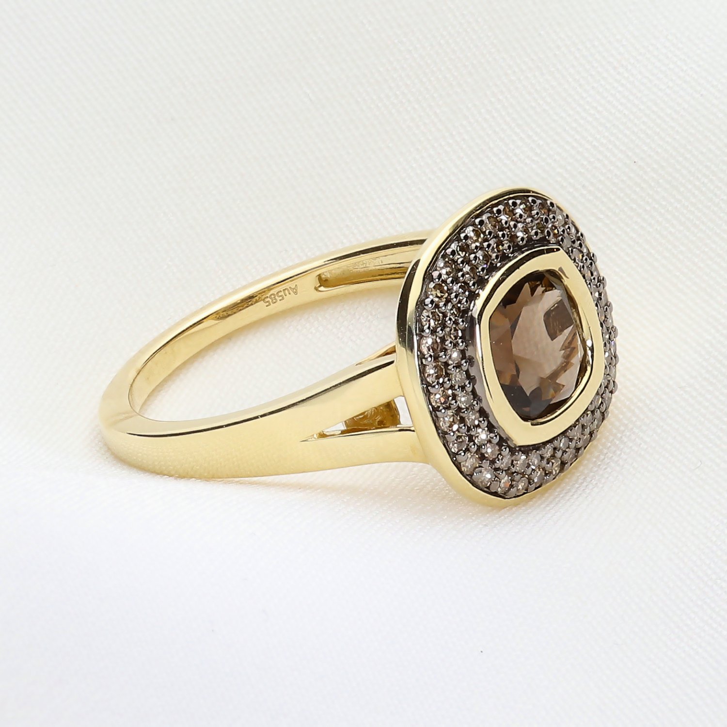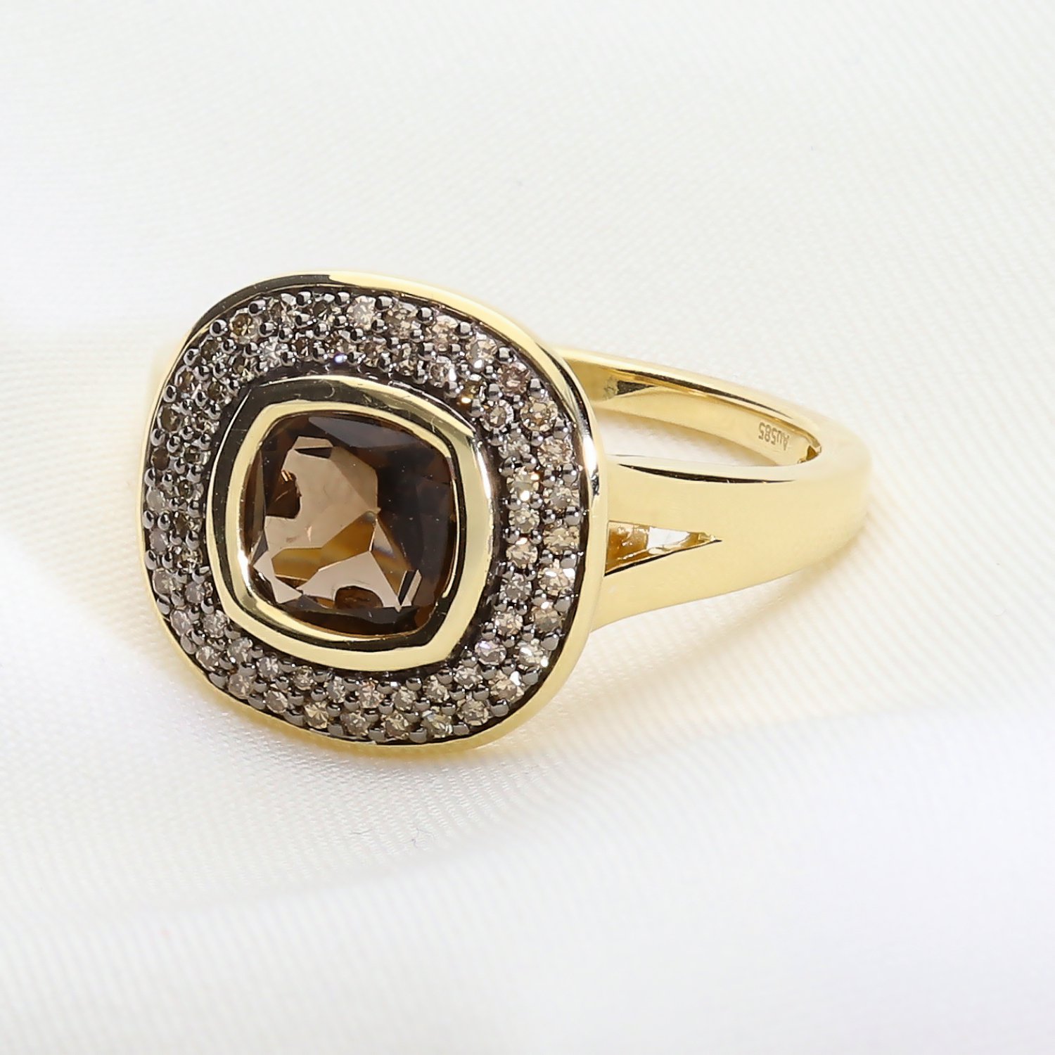 Złoty Pierścionek z Kwarcem Dymnym i Brylantami