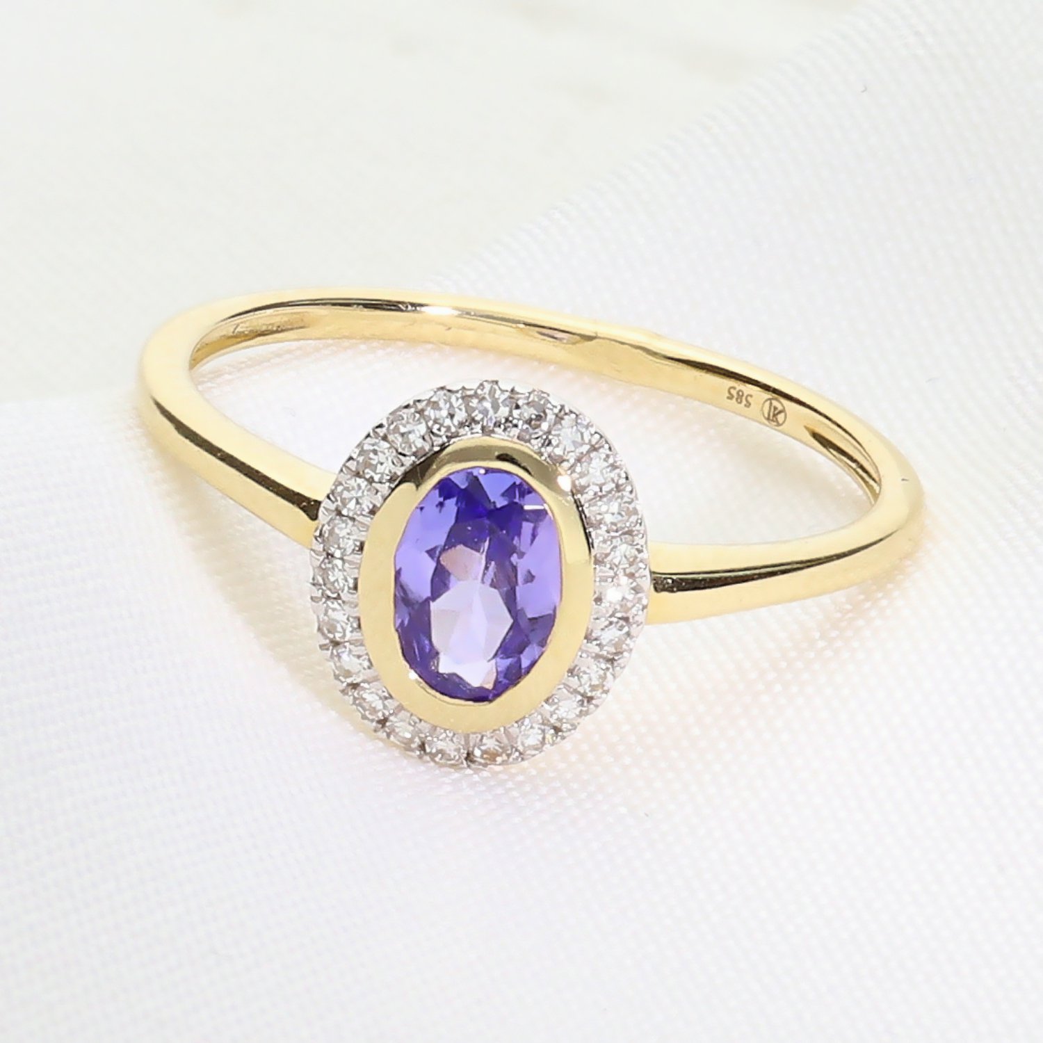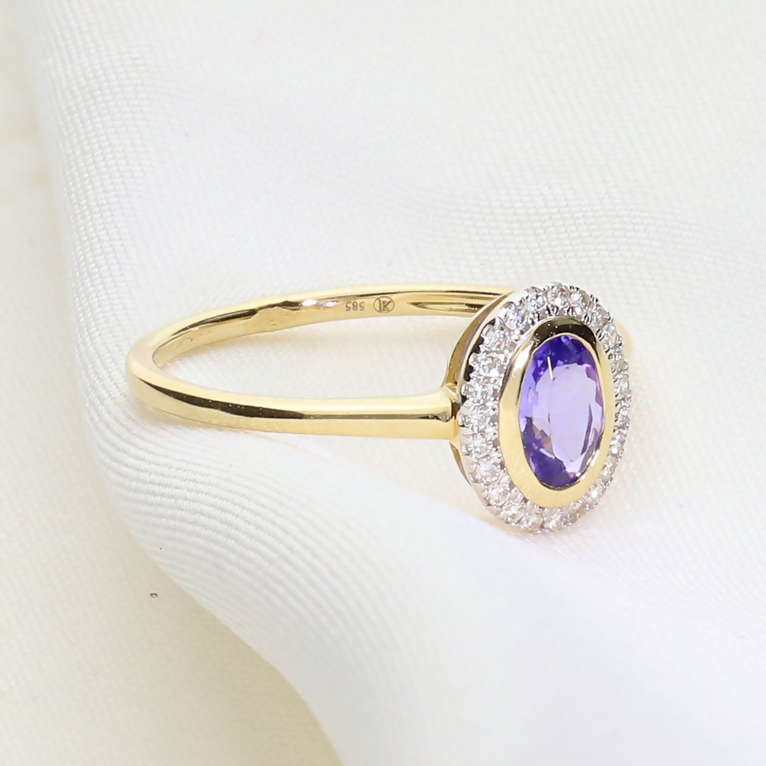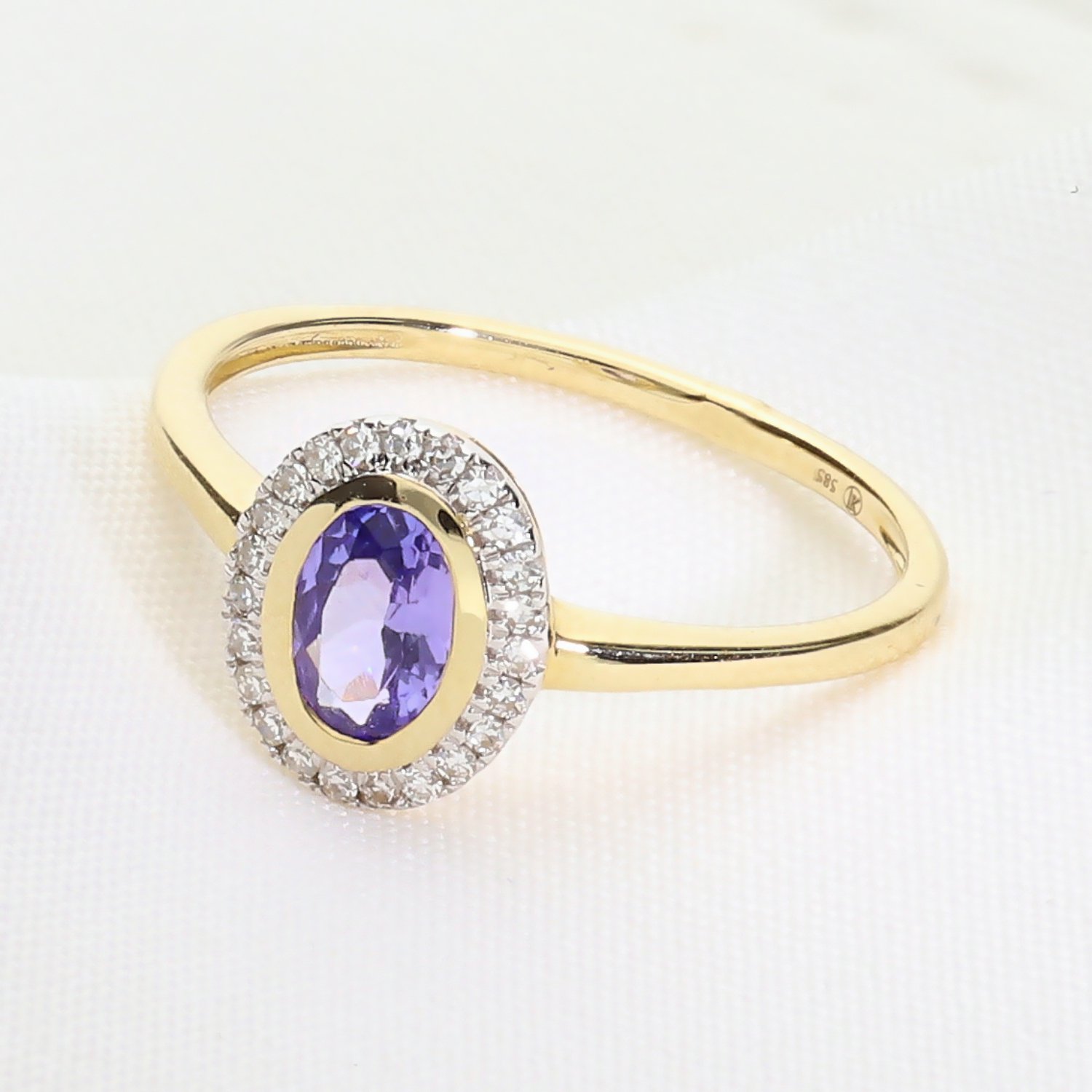 Złoty pierścionek z tanzanitem i brylantami – elegancja w odcieniu błękitu 0070266704