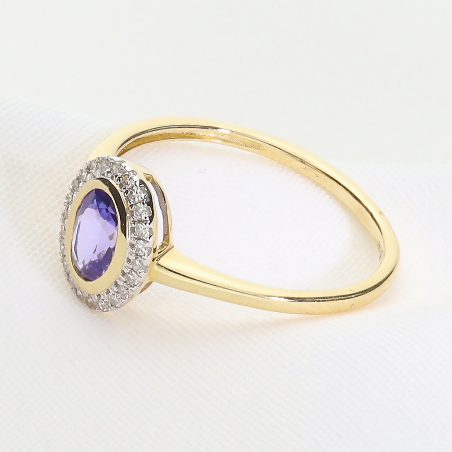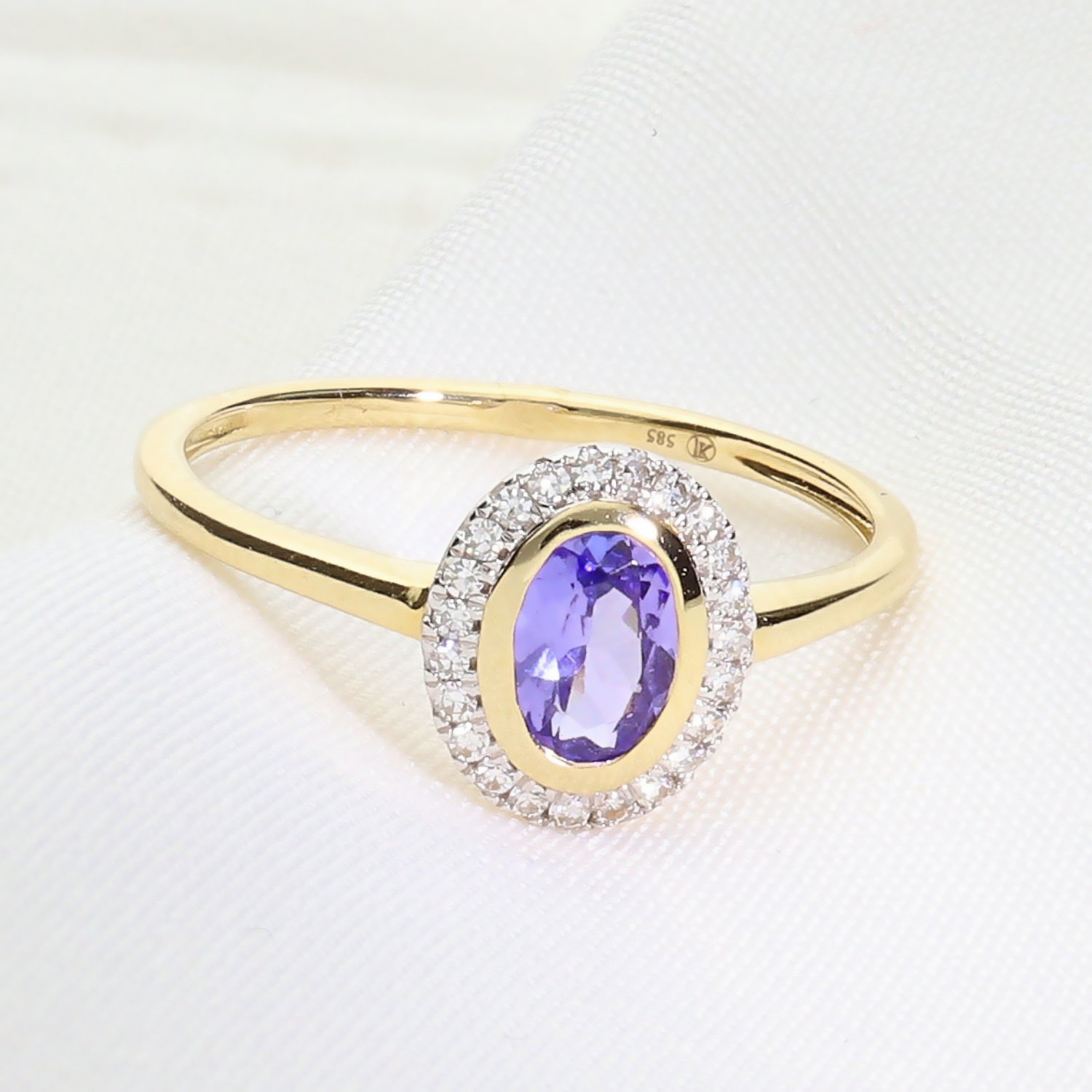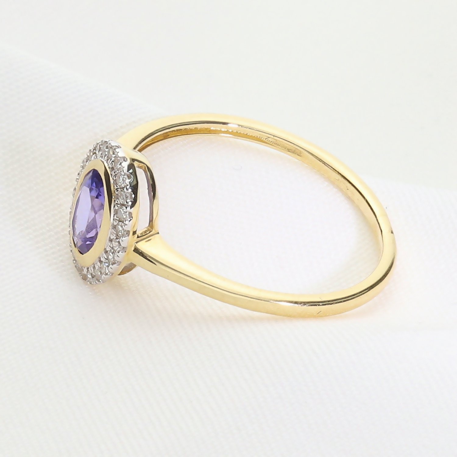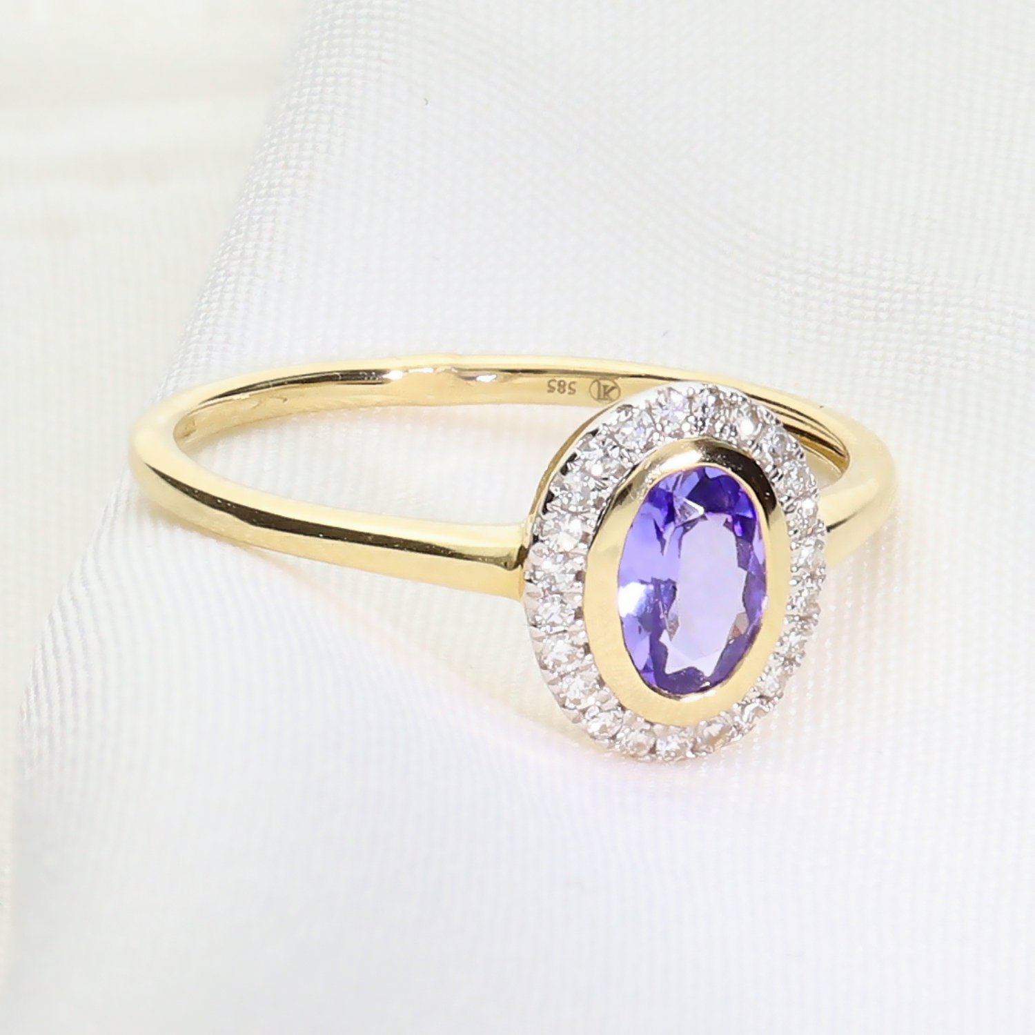 Złoty pierścionek z tanzanitem i brylantami – elegancja w odcieniu błękitu