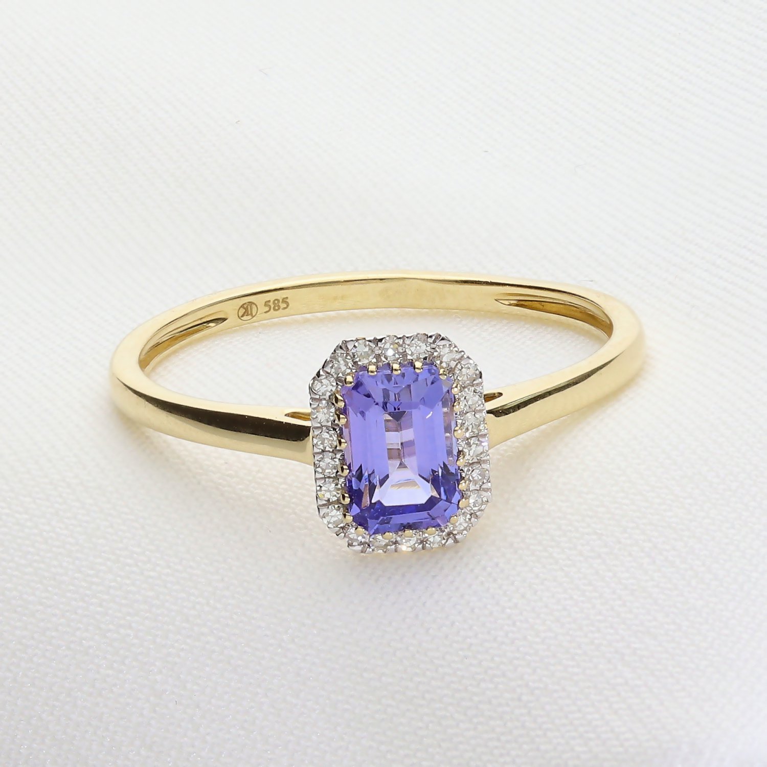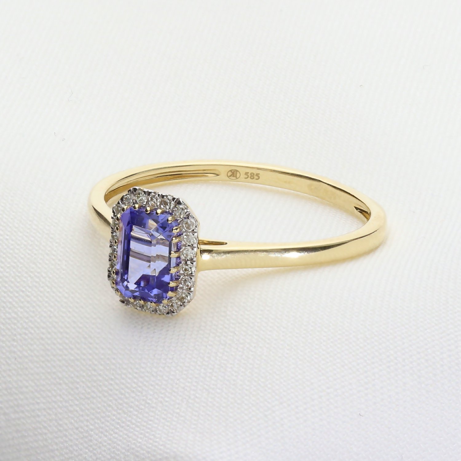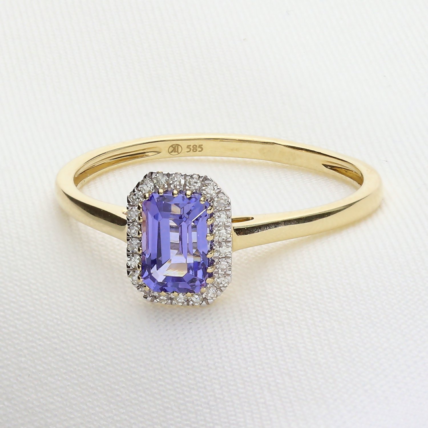 Ekskluzywny złoty pierścionek z naturalnym tanzanitem i brylantami 0070268924