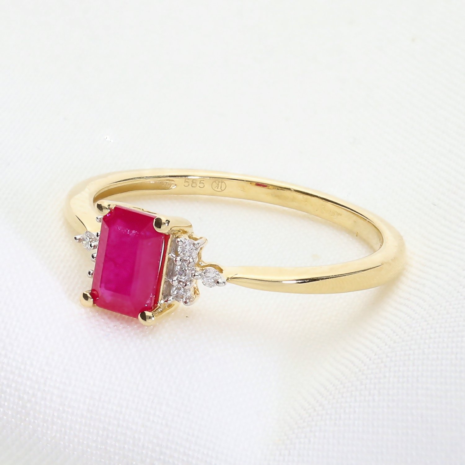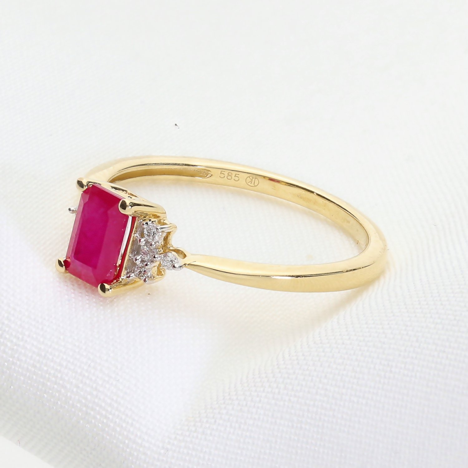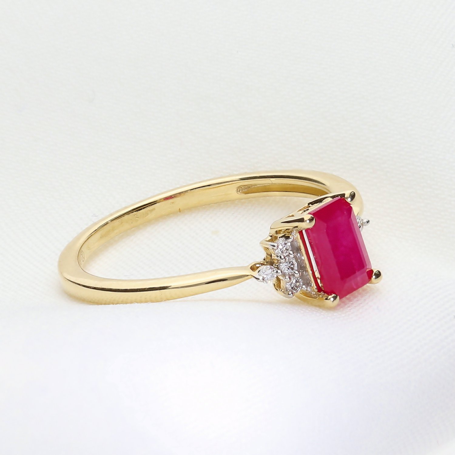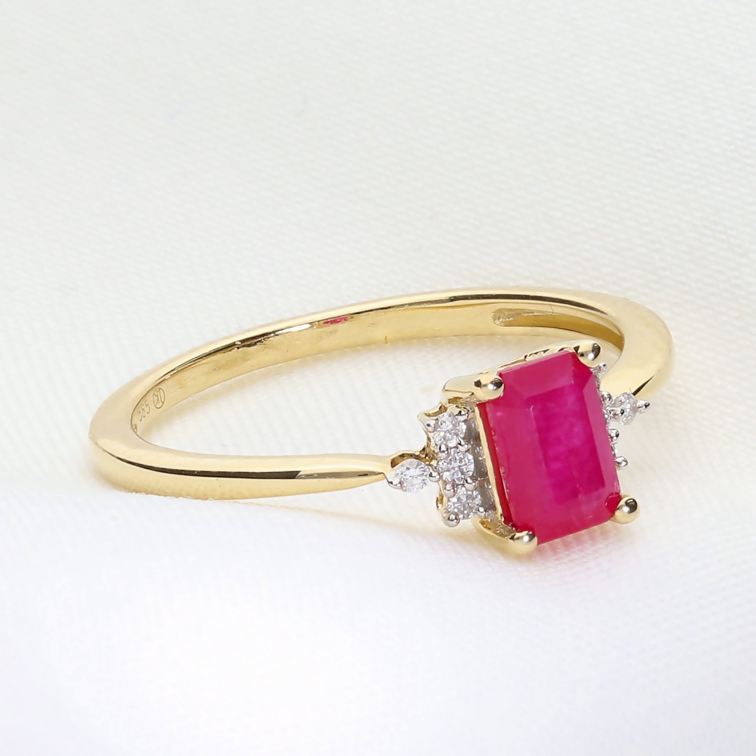 Kategoria: Pierścionki Kruszec: Złoto żółte Kamień centralny: Rubin o masie 1,29 ct. Kamień boczny: Brylanty, 8 szt. o łącznej masie 0,051 ct. Czystość: SI Barwa: GH Próba: 585 Dla: Niej Masa: 1,8 ct.