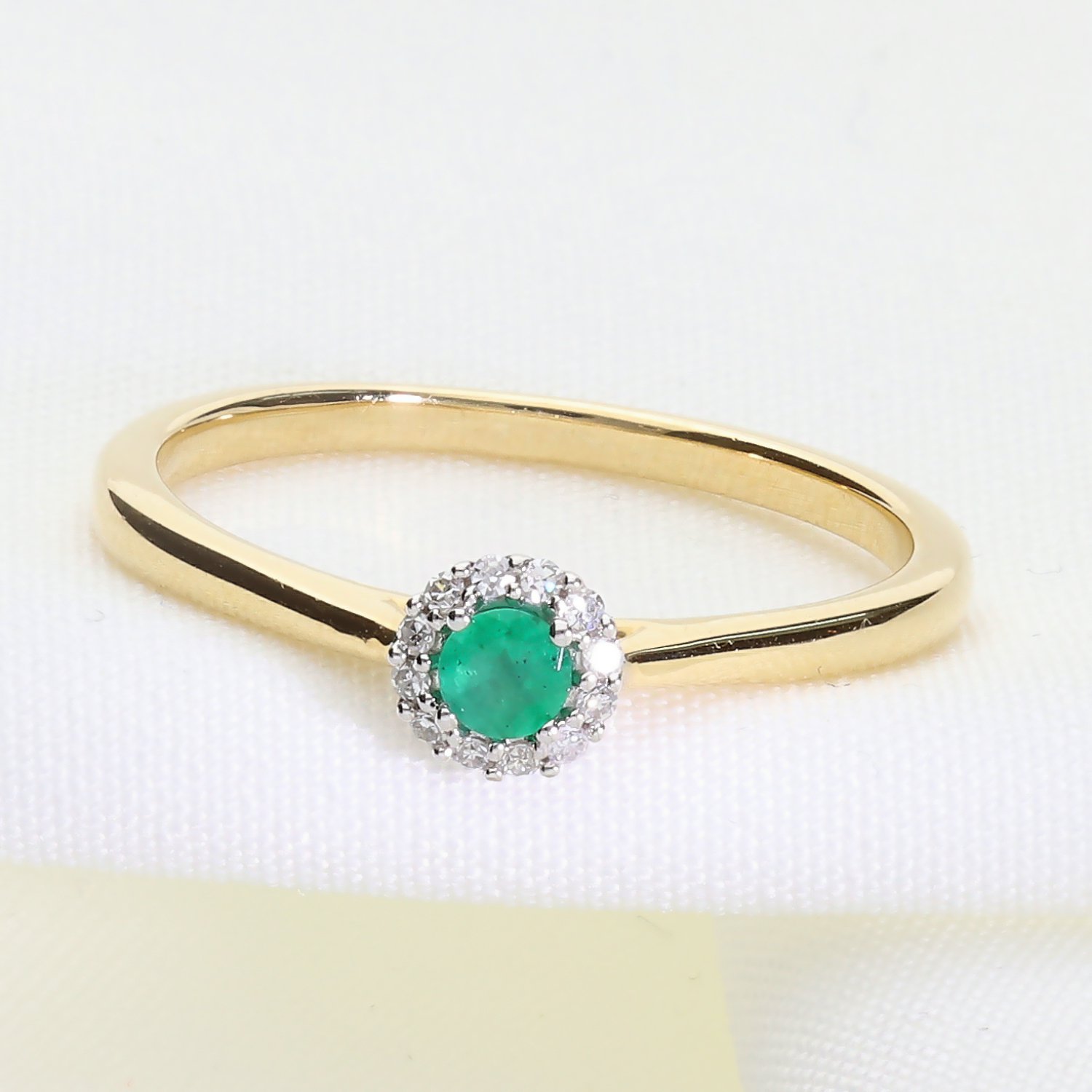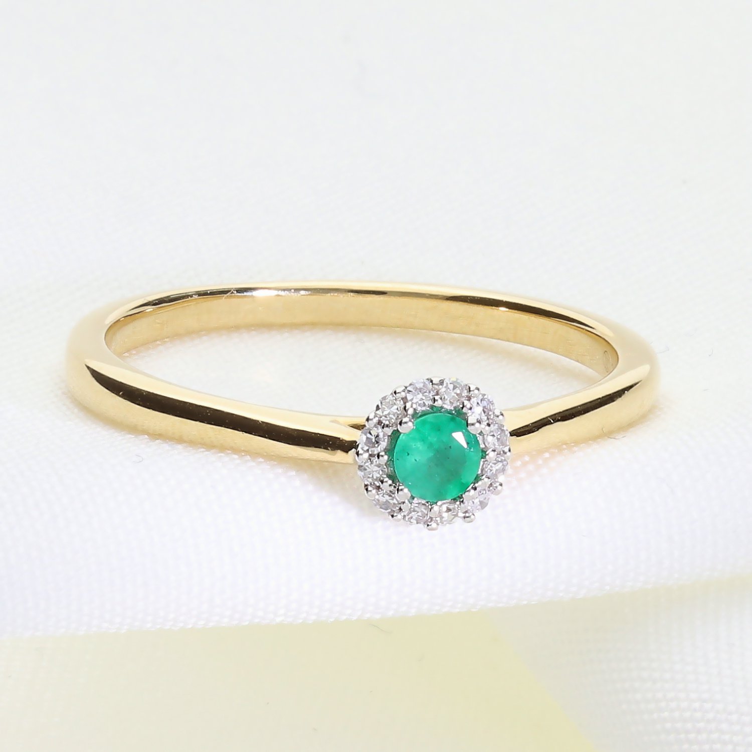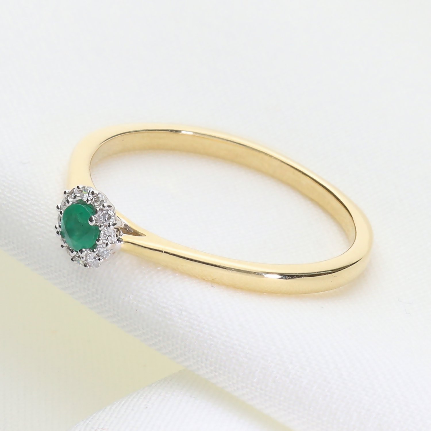 Klasyczny złoty pierścionek z naturalnym szmaragdem i brylantami