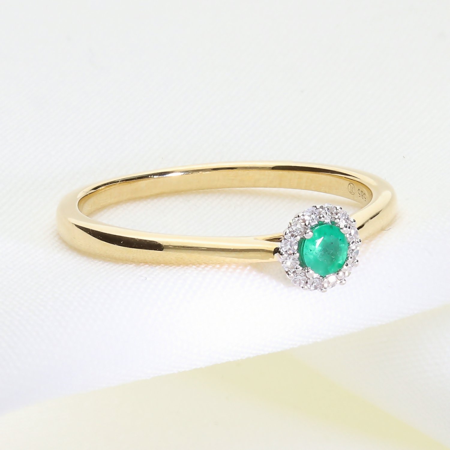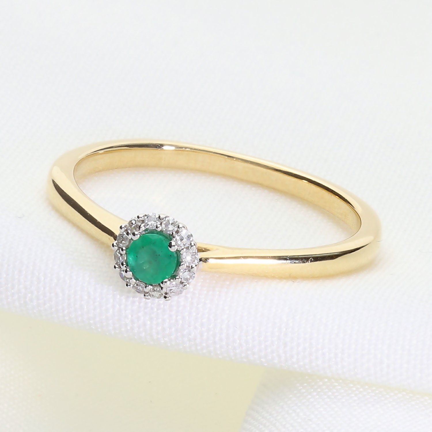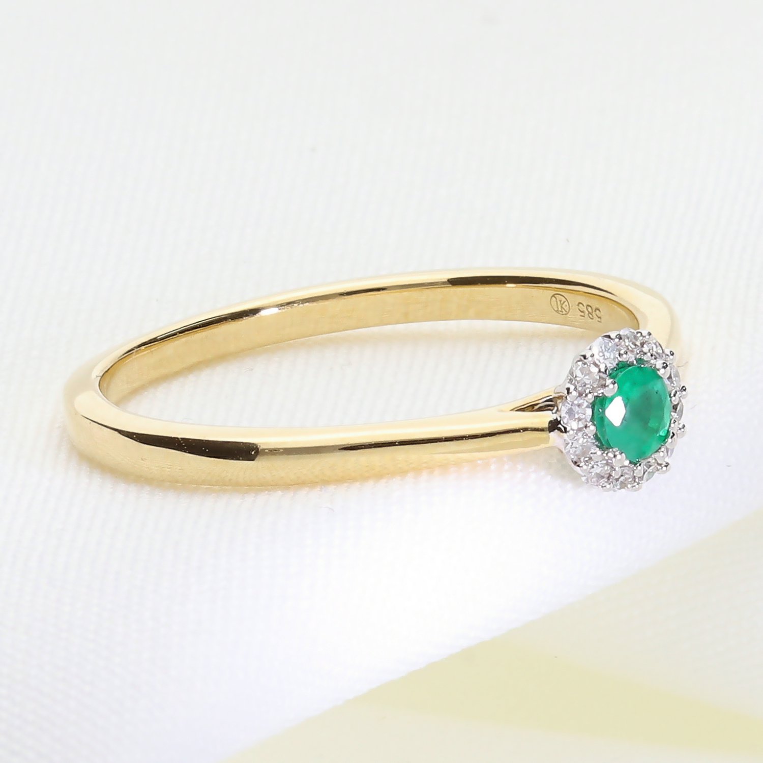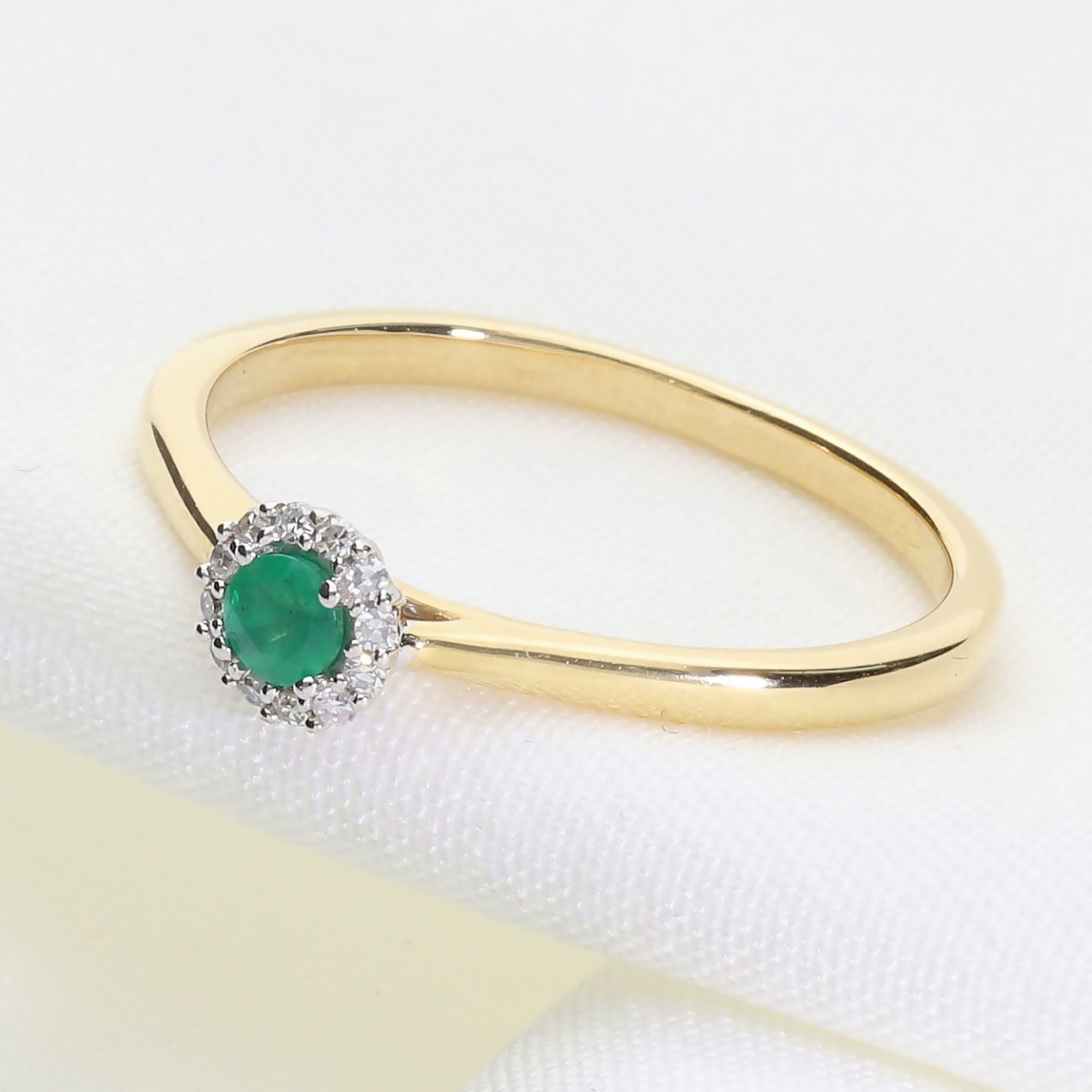 Klasyczny złoty pierścionek z naturalnym szmaragdem i brylantami