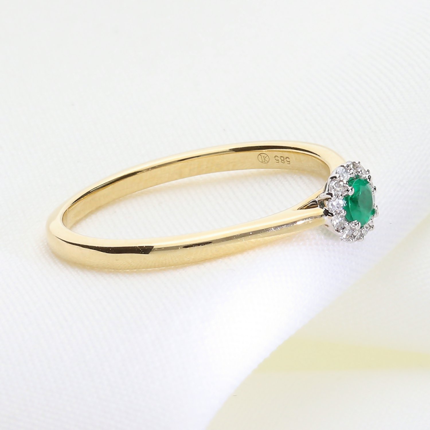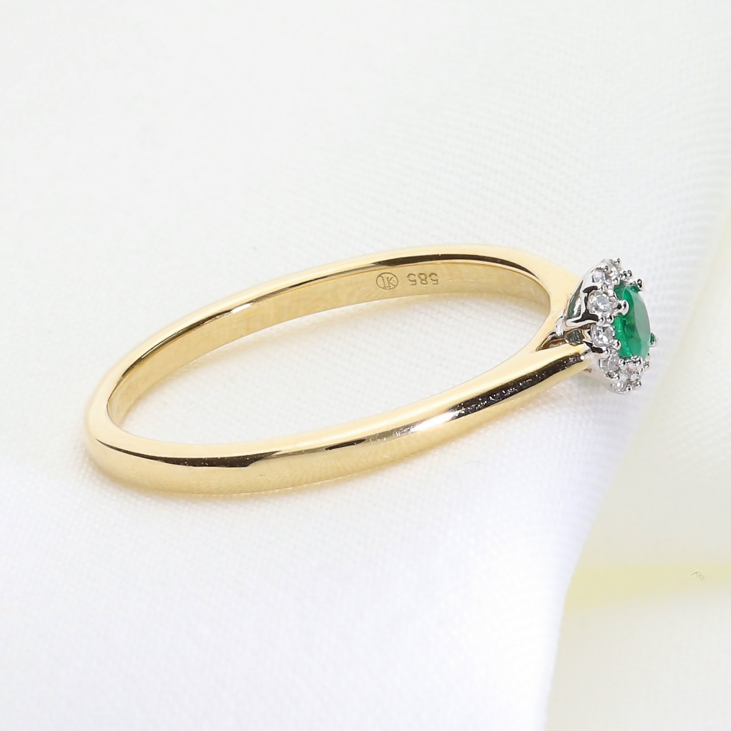 Klasyczny złoty pierścionek z naturalnym szmaragdem i brylantami 0070268921