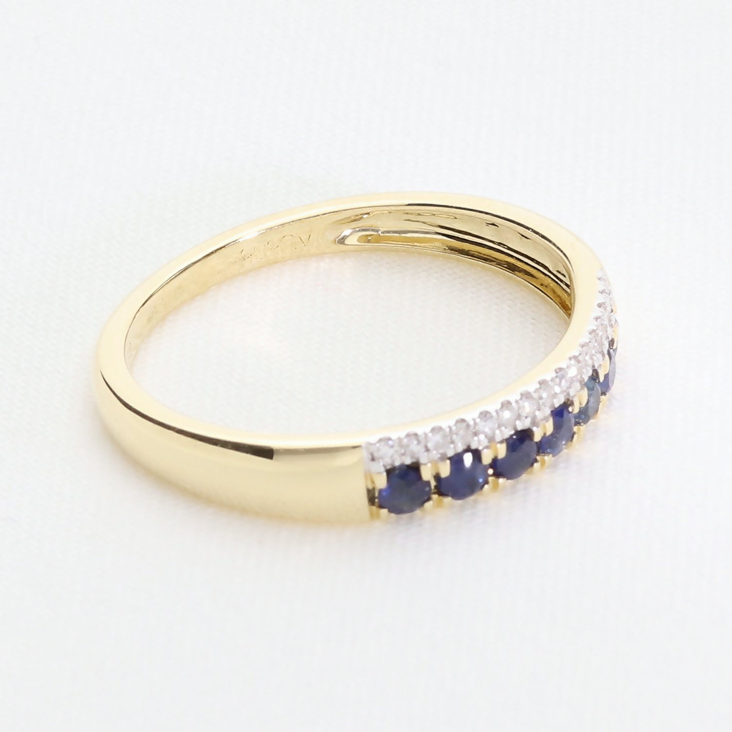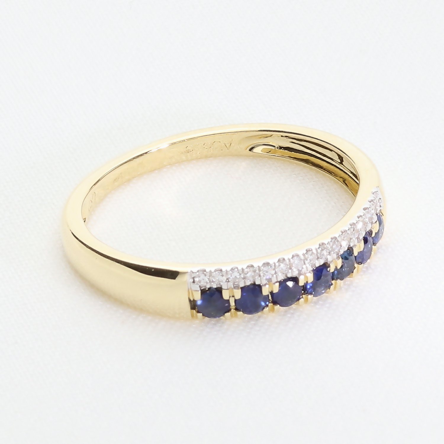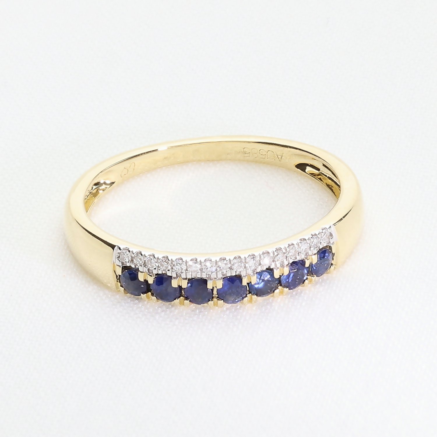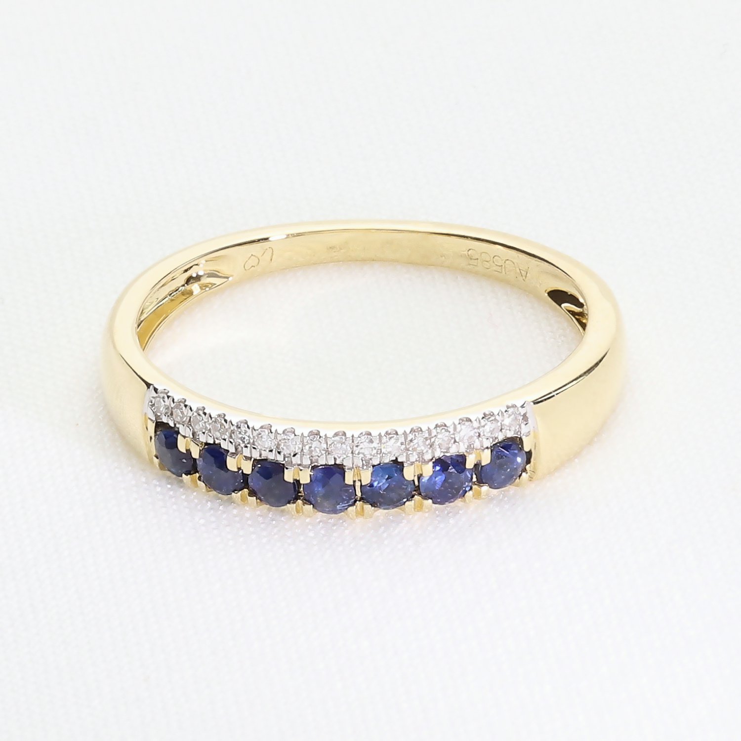 Głęboki granat szafirów w połączeniu z żółtym złotem to zestawienie niezwykle eleganckie. Pierścionek będzie głównym punktem każdej stylizacji – od wieczorowych sukni po biznesowe garnitury. Świetnie komponuje się z bielą, szarością, czernią oraz wszelkimi odcieniami błękitu, dodając całości szlachetnego charakteru.