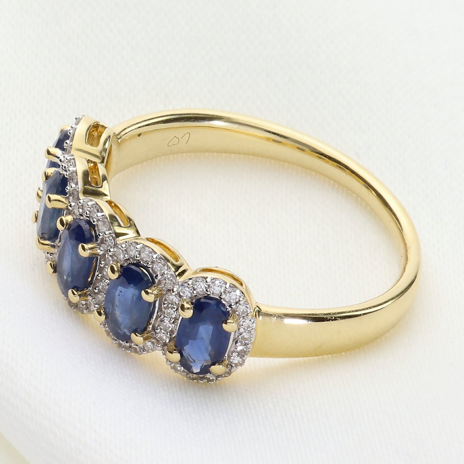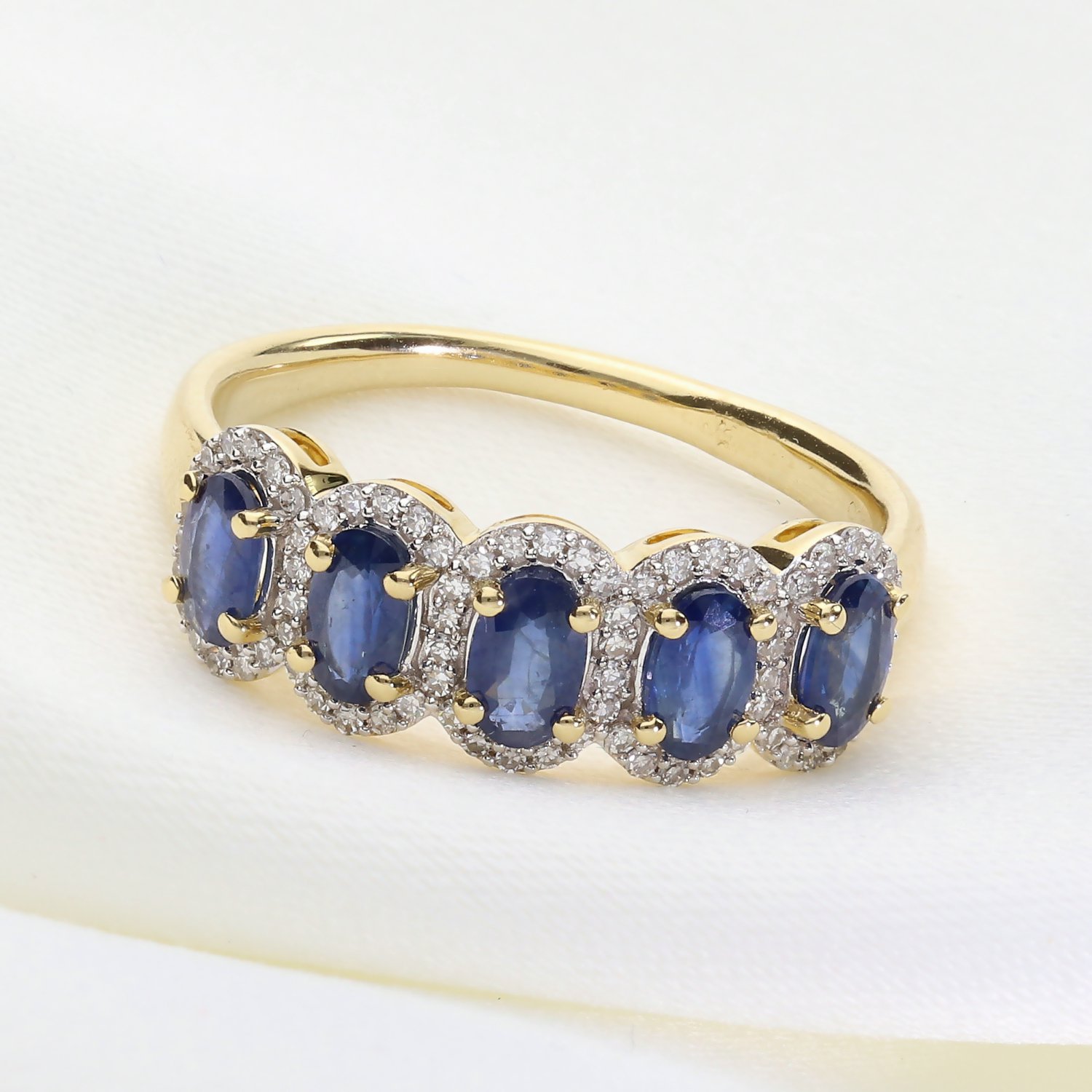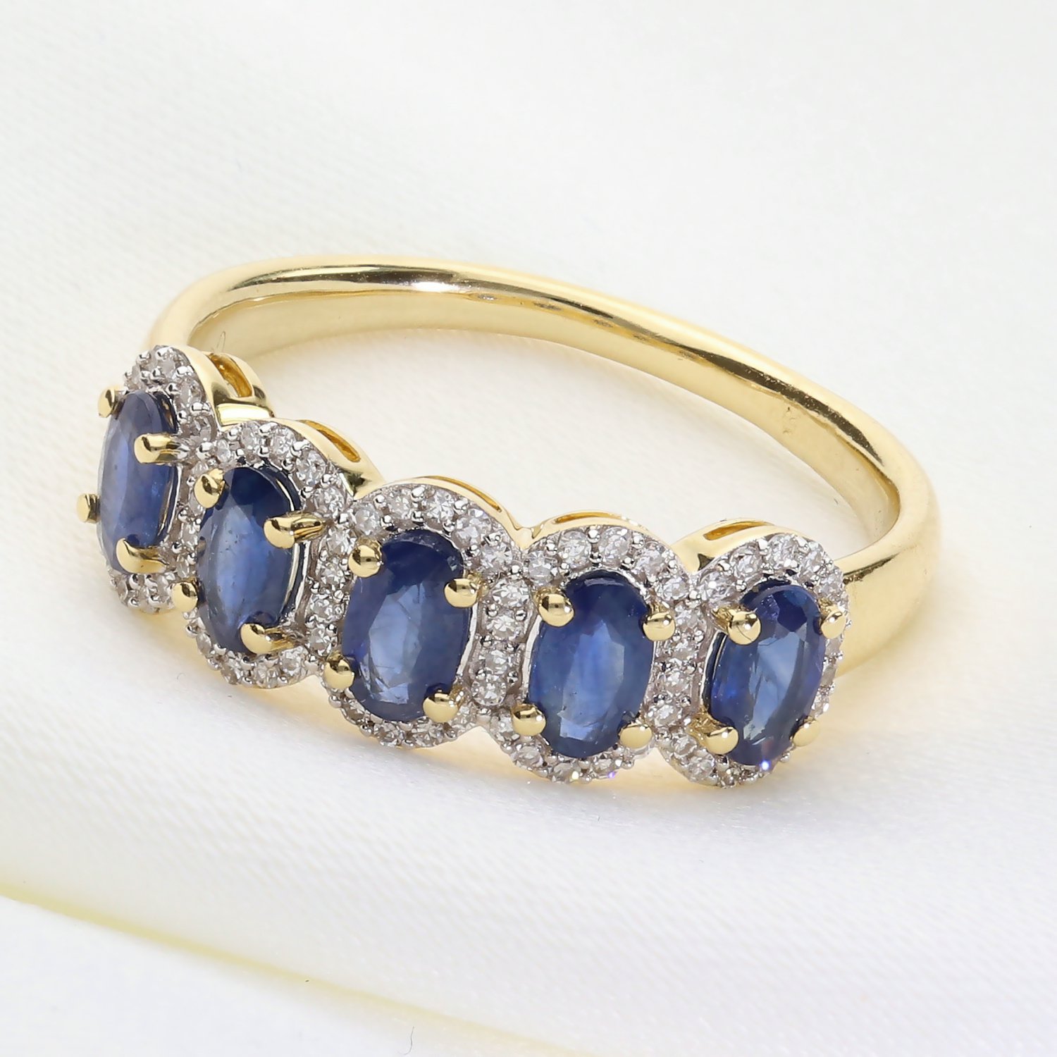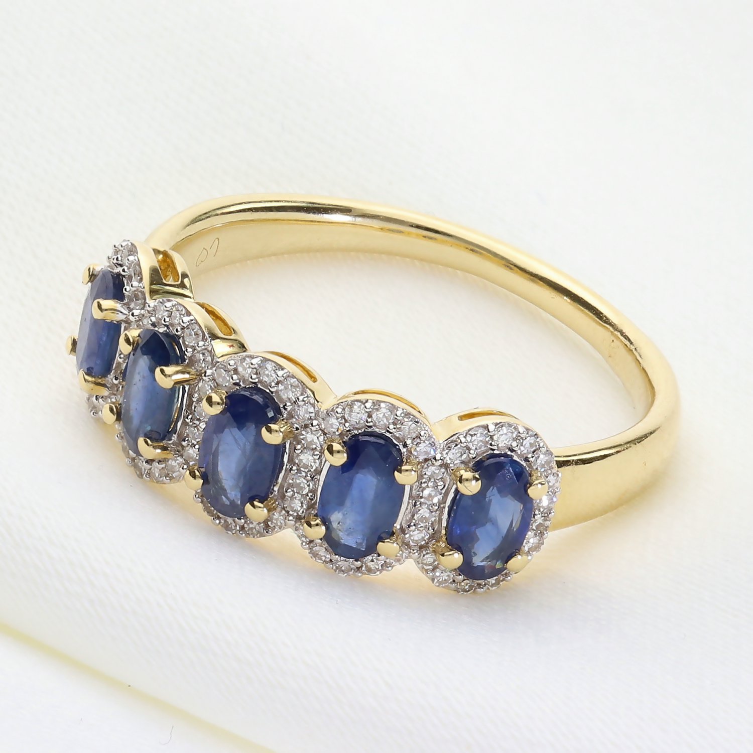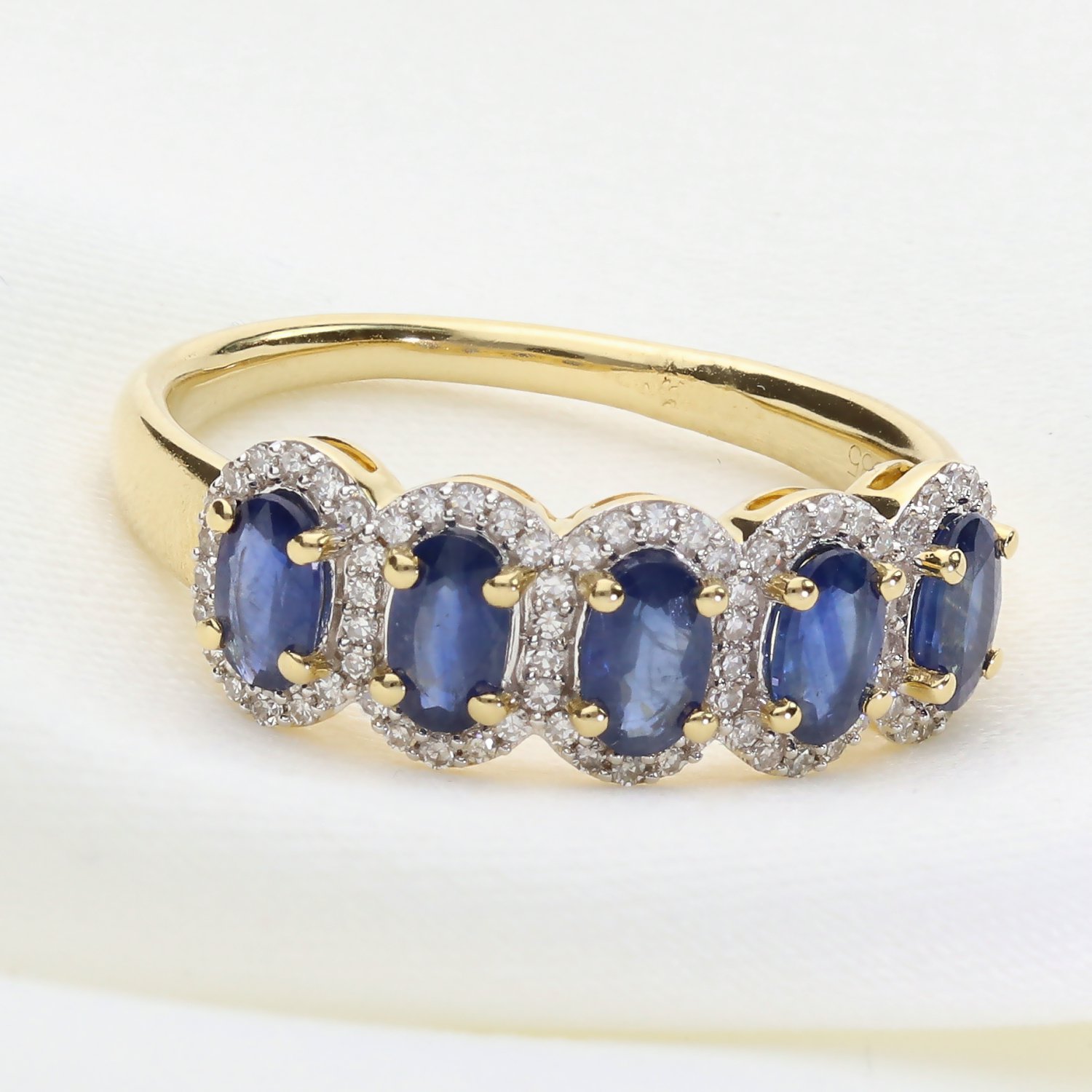 Fioletowo-niebieskie tony pięciu tanzanitów w zestawieniu z żółtym złotem tworzą prestiżowy duet. Pierścionek fenomenalnie pasuje do stylizacji w kolorze granatu, bieli, szarości oraz czerni. Dzięki swojej efektownej formie, doskonale sprawdzi się zarówno jako główny akcent do wieczorowej kreacji, jak i luksusowy dodatek do eleganckiego, biurowego stroju.
